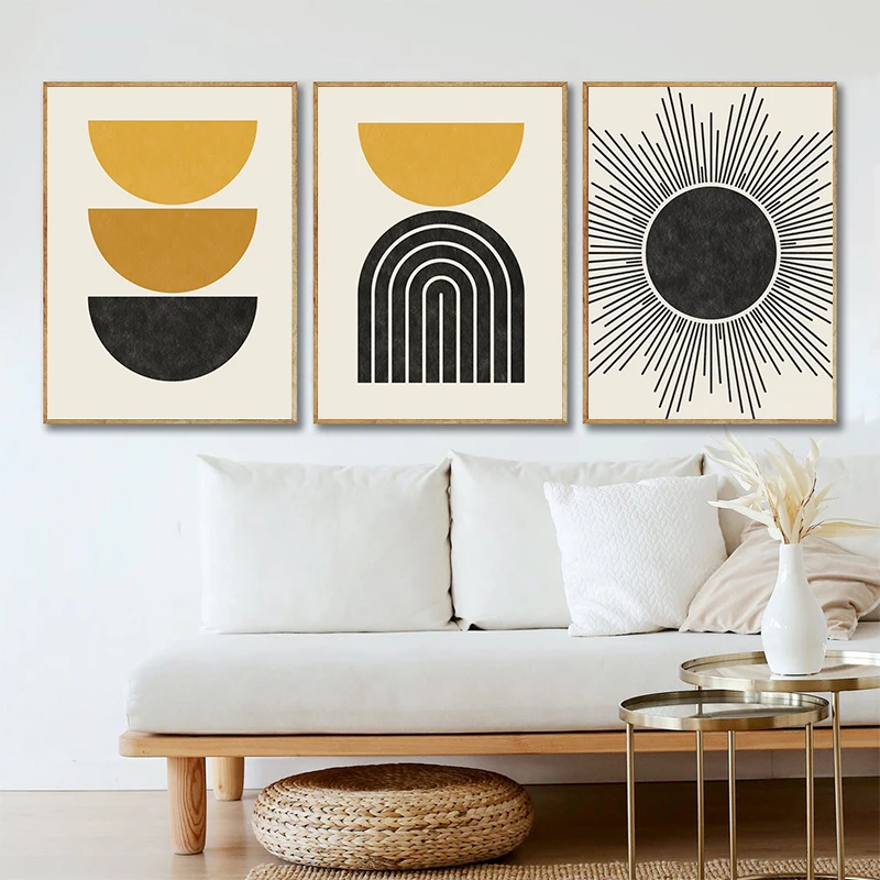 Минималистские принты в горчичном цвете s, серо-черный Настенный декор для гостиной, цветные блоки, полосы, постер, круги, холст, живопись