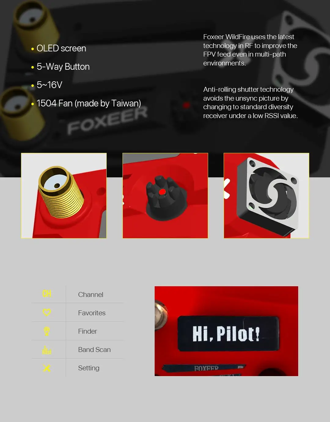 Foxeer Wildfire 72CH 5,8 ГГц двойной приемник OLED поддержка OSD пр...