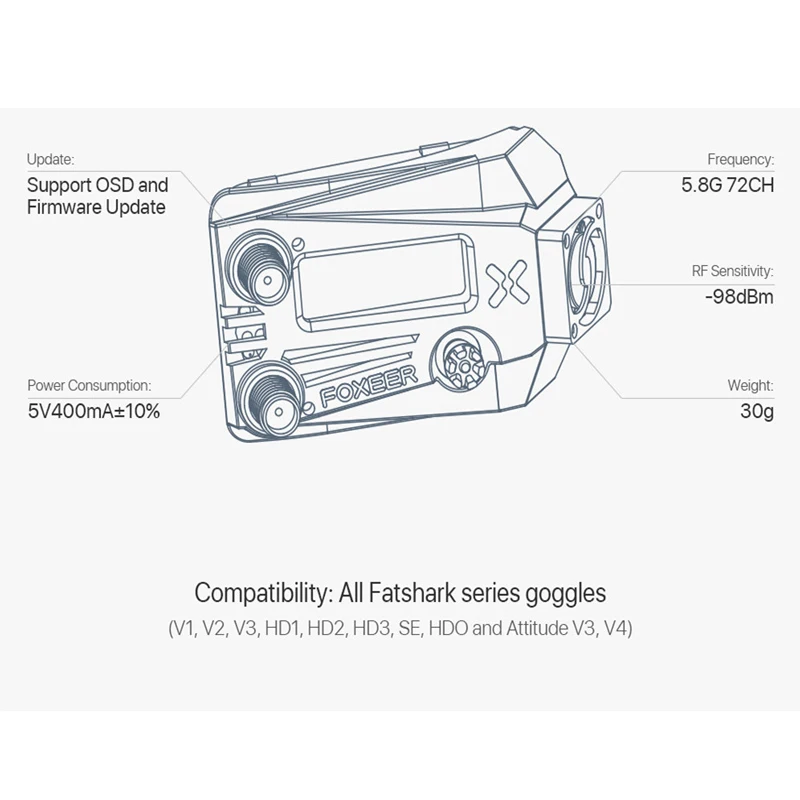 5,8G Foxeer WildfireGoggle модуль с двойным приемником для Fatshark...