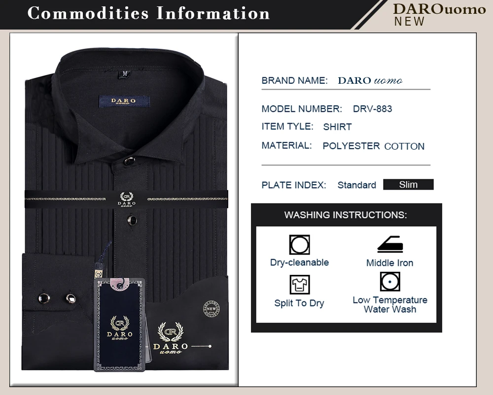 Черная Рубашка-смокинг DARO, вечерние рубашки для свадьбы 2020, новая Облегающая рубашка 883