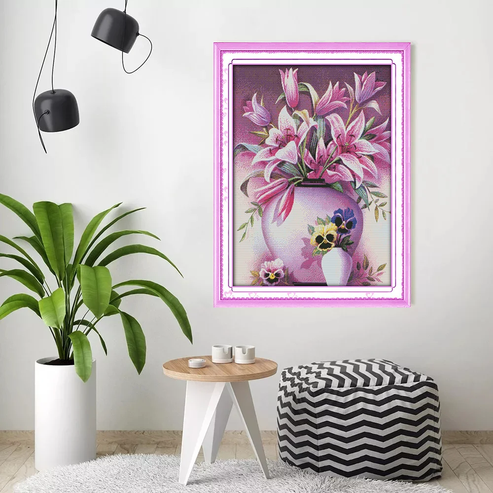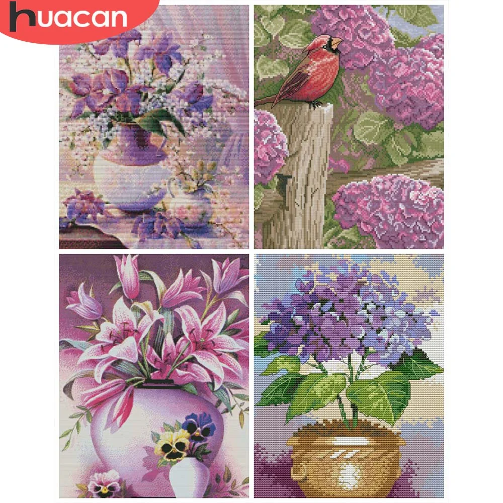 HUACAN DIY Вышивка крестиком цветы в вазе хлопок нить живопись выши...
