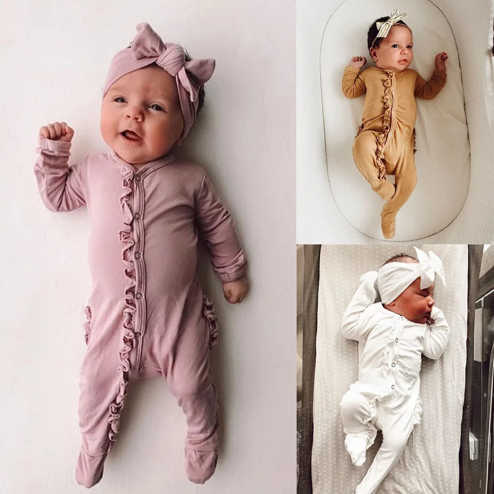 Комбинезон для мальчиков и девочек, мягкий хлопковый комбинезон с длинными рукавами и оборками, для детей от 0 до 12 месяцев, малыш новорожденный младенец