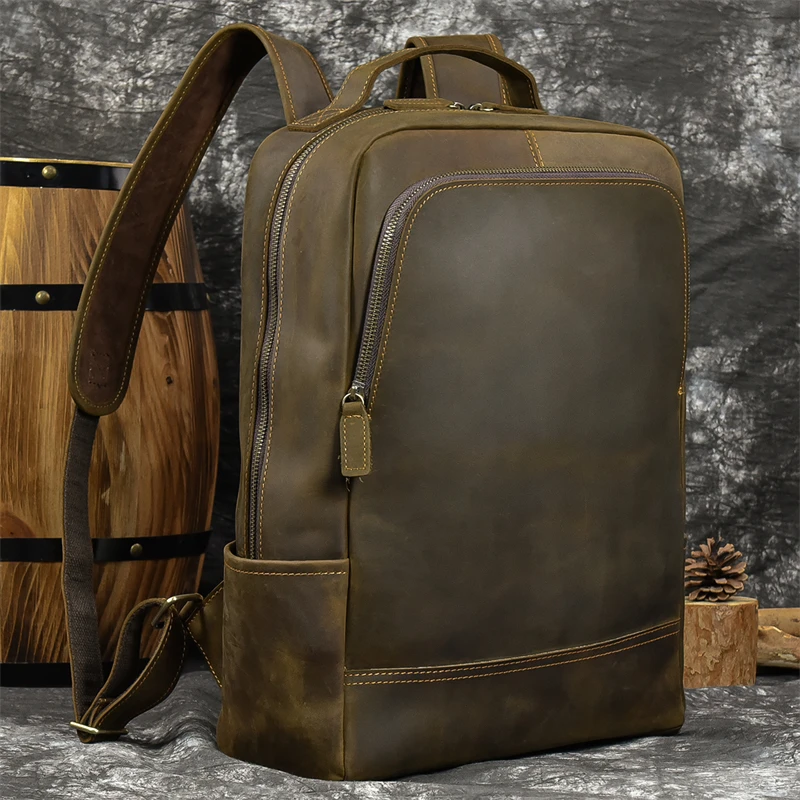 Мужской кожаный рюкзак для ноутбука 2022 дюйма, с отделением для ноутбука 15,6 дюйма