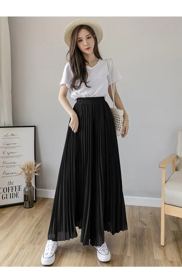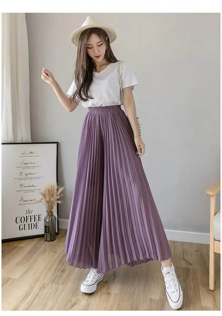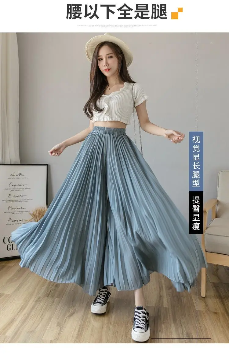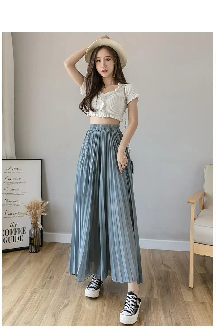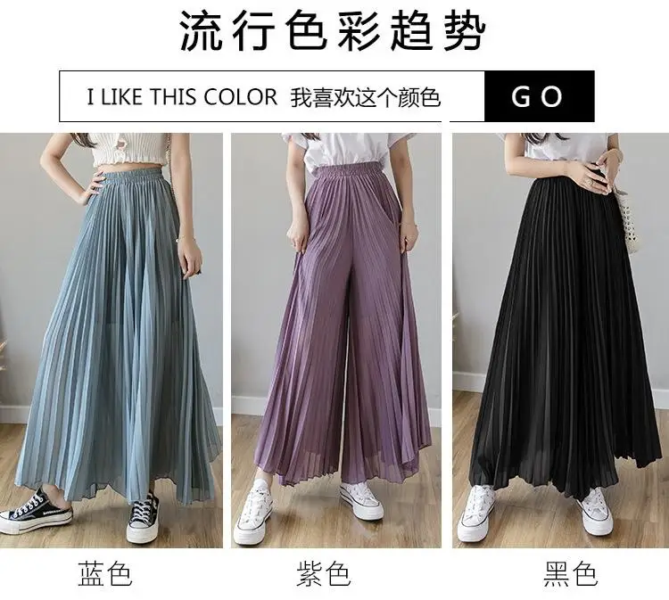 Плиссированные Женские Брюки-кюлоты iвыбор, шифоновые летние брюки, широкие брюки с высокой талией, свободные брюки в Корейском стиле, брюки палаццо