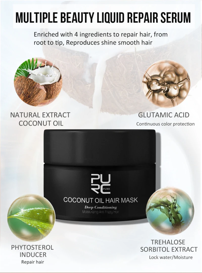 Маска для волос Purc с кокосовым маслом-это маска для волос насыщенного кремового цвета, предназначенная для увлажнения и укрепления