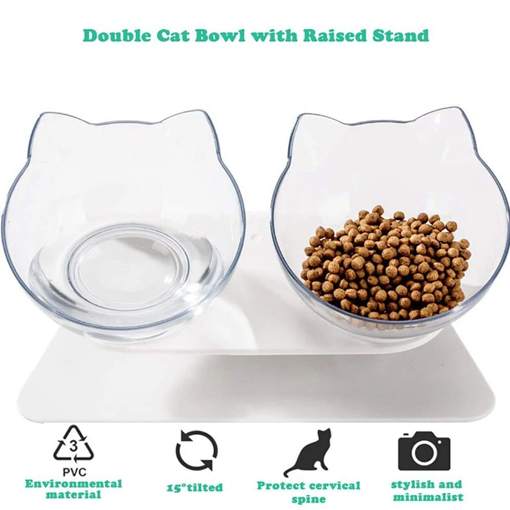Нескользящая миска для кошек, прозрачная прочная двойная миска с пр...