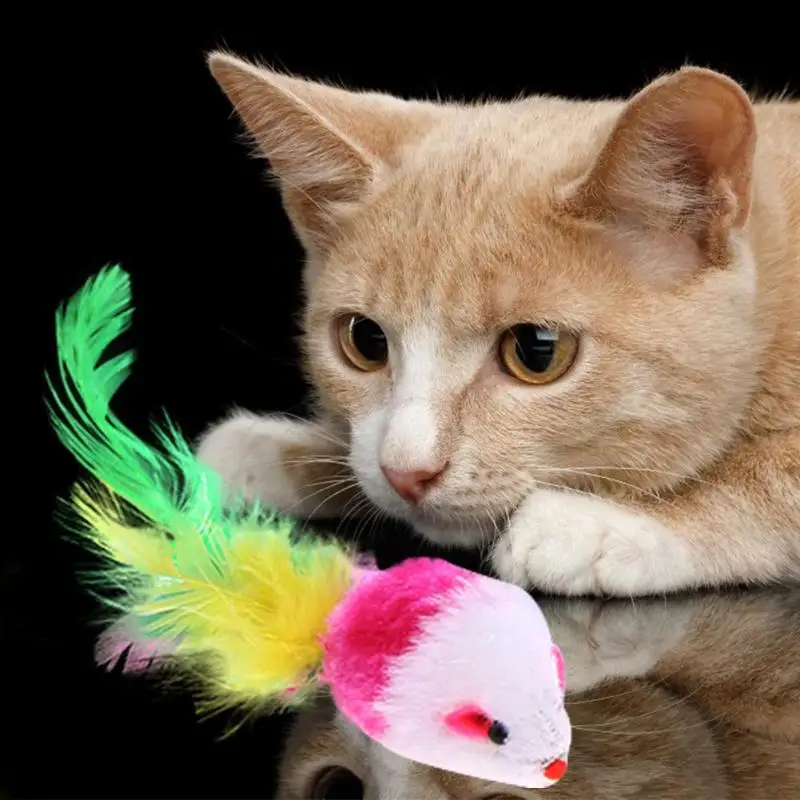 Игрушка кошка Крыса Мышь забавная жевательная игрушка милая разноцветная Кошка Интерактивная игрушка с пером аксессуары для питомцев подарок для кошек и собак
