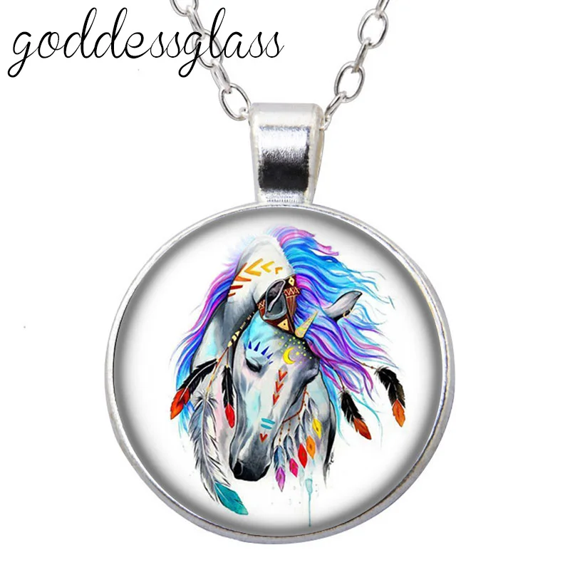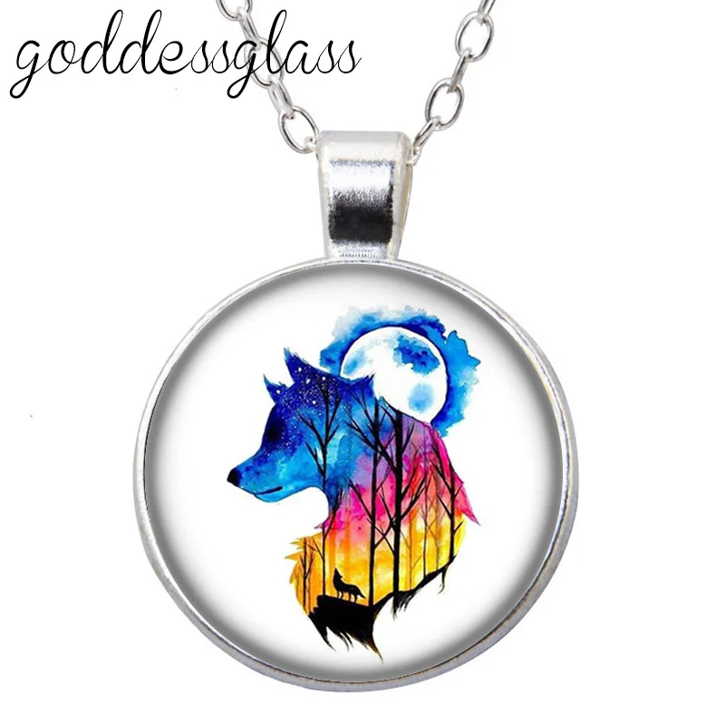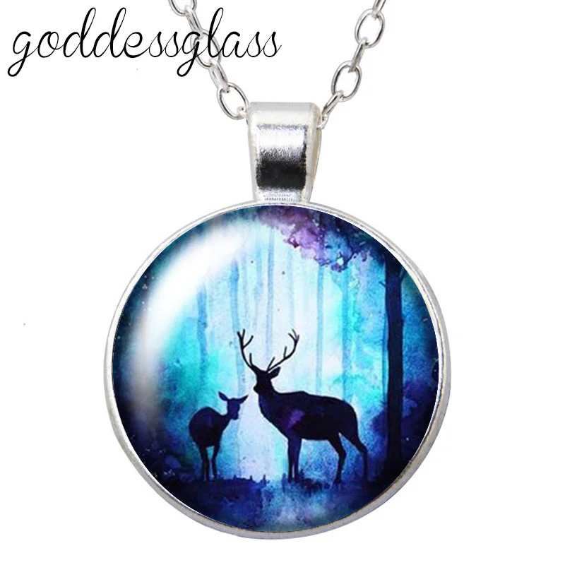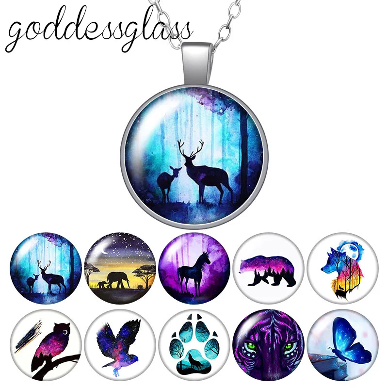 Ожерелье с подвеской в виде животных, оленя, единорога, волка, медведя, бабочки, совы, Круглое стекло, кабошон, посеребренныйхрустальный, ювелирные изделия для подарка