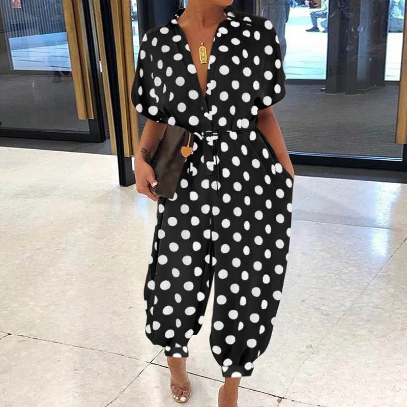 Женский комбинезон с леопардовым принтом, летний комбинезон в стиле ретро с короткими рукавами, на шнуровке, повседневный комбинезон с V-образным вырезом и карманами, боди 5XL