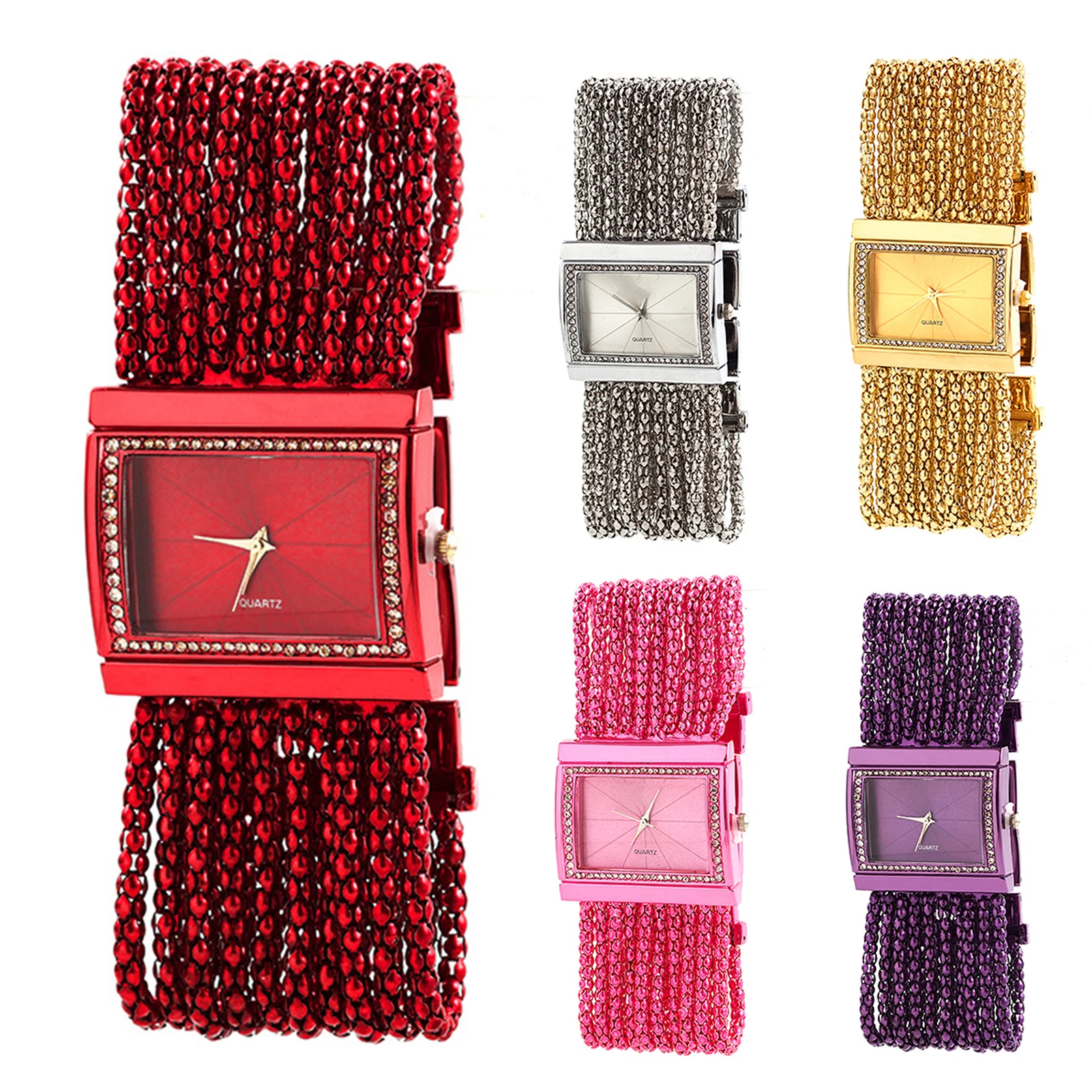 Women WatchesTop luxury Golden Multi-layer Beads Analog Quartz Alloy Golden Band Bracelet Watch Clock Reloj Mujer Ladies Watch