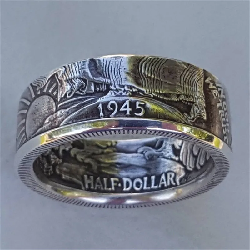 Мужские кольца с монетами в форме полудоллара серебряного цвета, винтажные модные ювелирные изделия в стиле панк, мужские антикварные обручальные кольца, мужские подарки