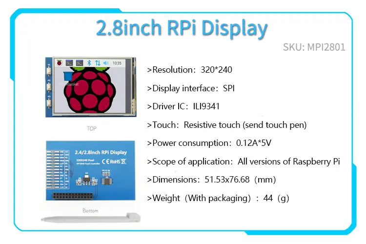 Сенсорный экран для Raspberry Pi 4B 3B B +, 3,22,83,23,52,4 дюйма, серия GPIO, 2,8 дюйма3,2 дюйма3,5 дюйма