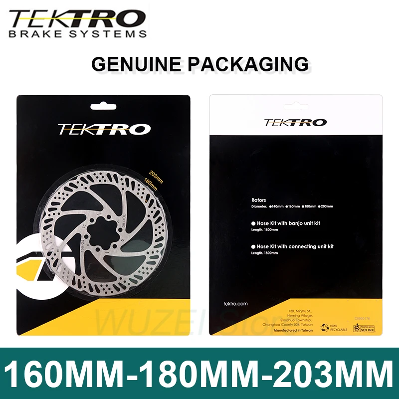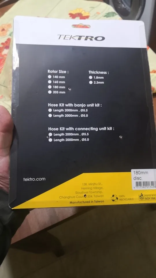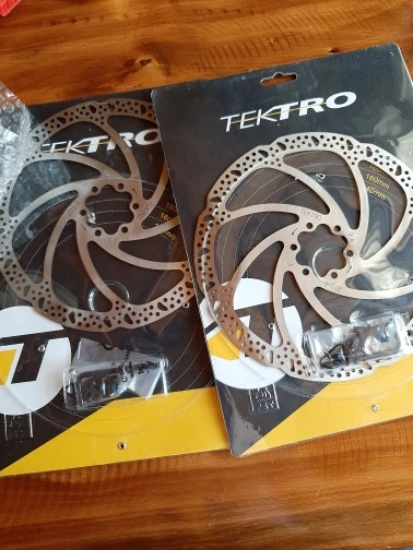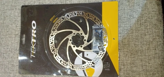 Nice rotor in a branded tektro packaging. Made in Taiwan. Bolts included. I haven't tried them yet, but measured on a flat surface and they are straight. Thickness of 1.87 mm is also consistent.