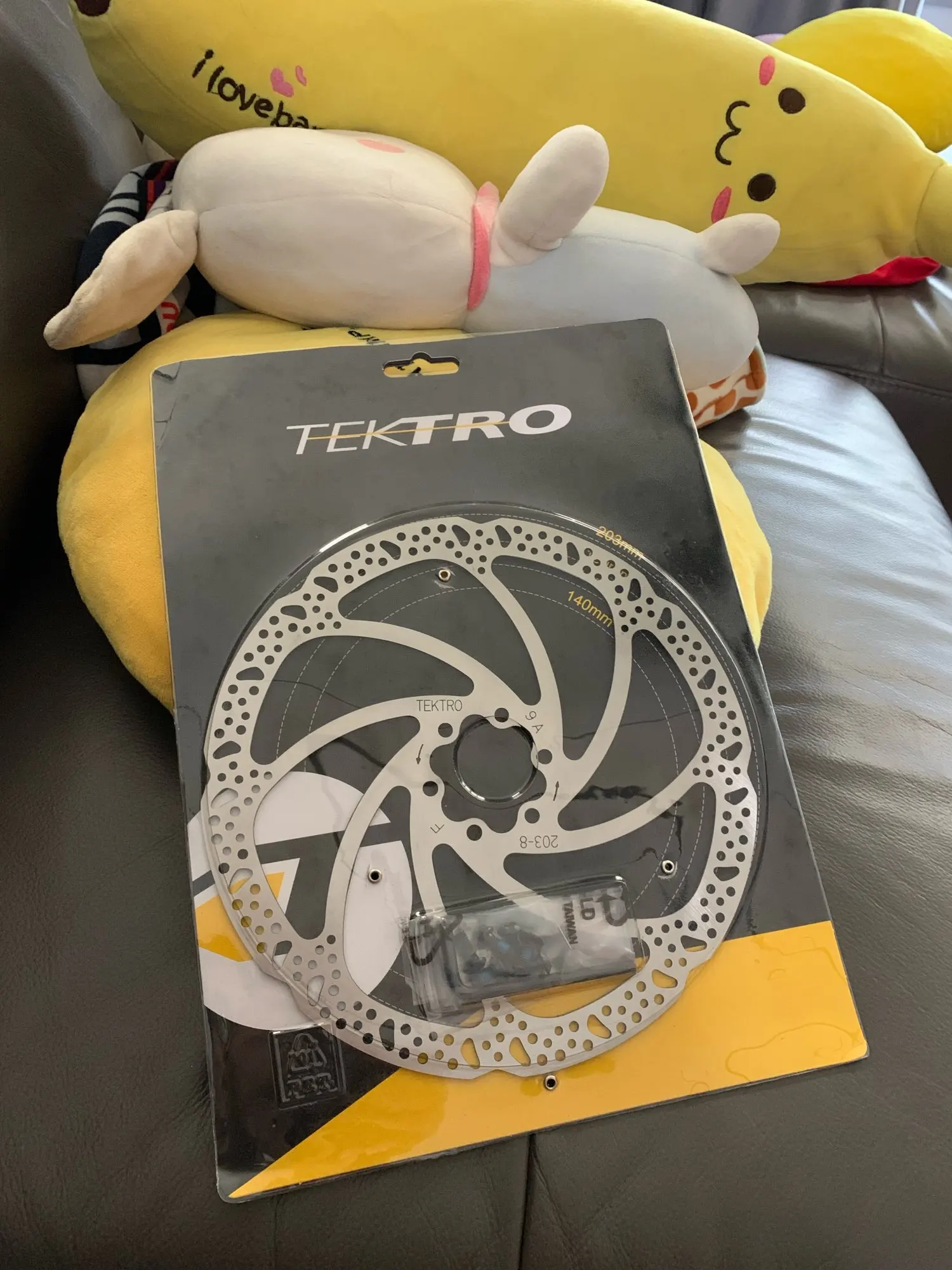 Как показано. У него было несколько Shimano RT26, которые держали спину очень сильно и иногда пищали. Как и Shimano rotors valen callampa, я решили использовать Tektro, потому что на другом велосипеде у меня было отличное качество, и они никогда не пищали. На данный момент я просто вставил спереди, потому что черный адаптер, который я купил, не работает. Попробуйте сейчас.