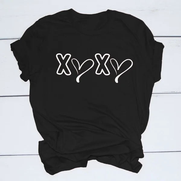 Новое поступление Женская мода забавные любящее сердце Футболки с принтом для женщин размера плюс короткий рукав; O-образный вырез; Лето; Принтовые тройники топы M167