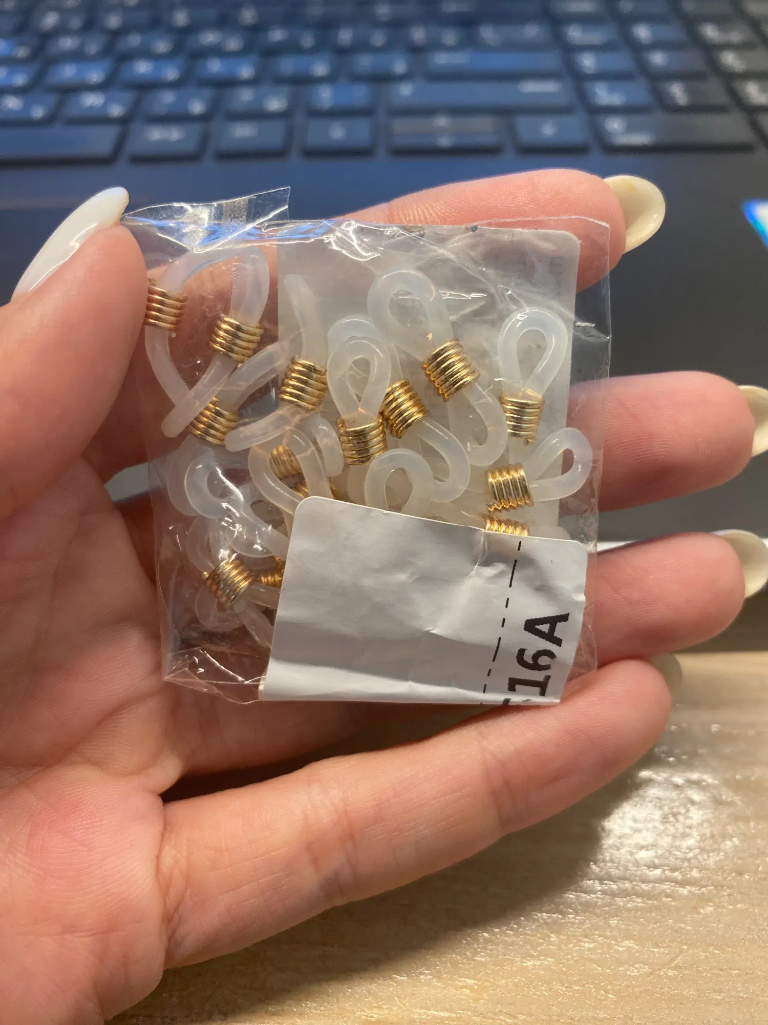 Товар супер! Все как на картинке. Качество отменное. Количество не считала, но пакетик полностью набит, думаю, заявленное количество положили. Понравилось, что можно самостоятельно выбрать цвет железочек. Заказала два цвета - золотой и серебро, под все очки подойдёт. Золотой не колхозный. Смело берите, доставка быстрая