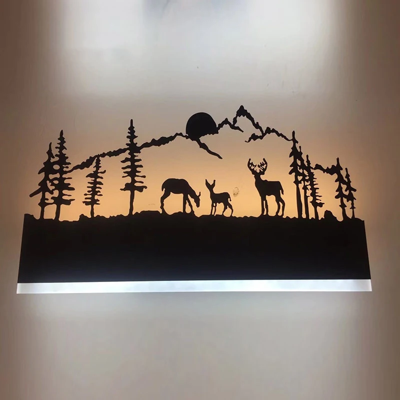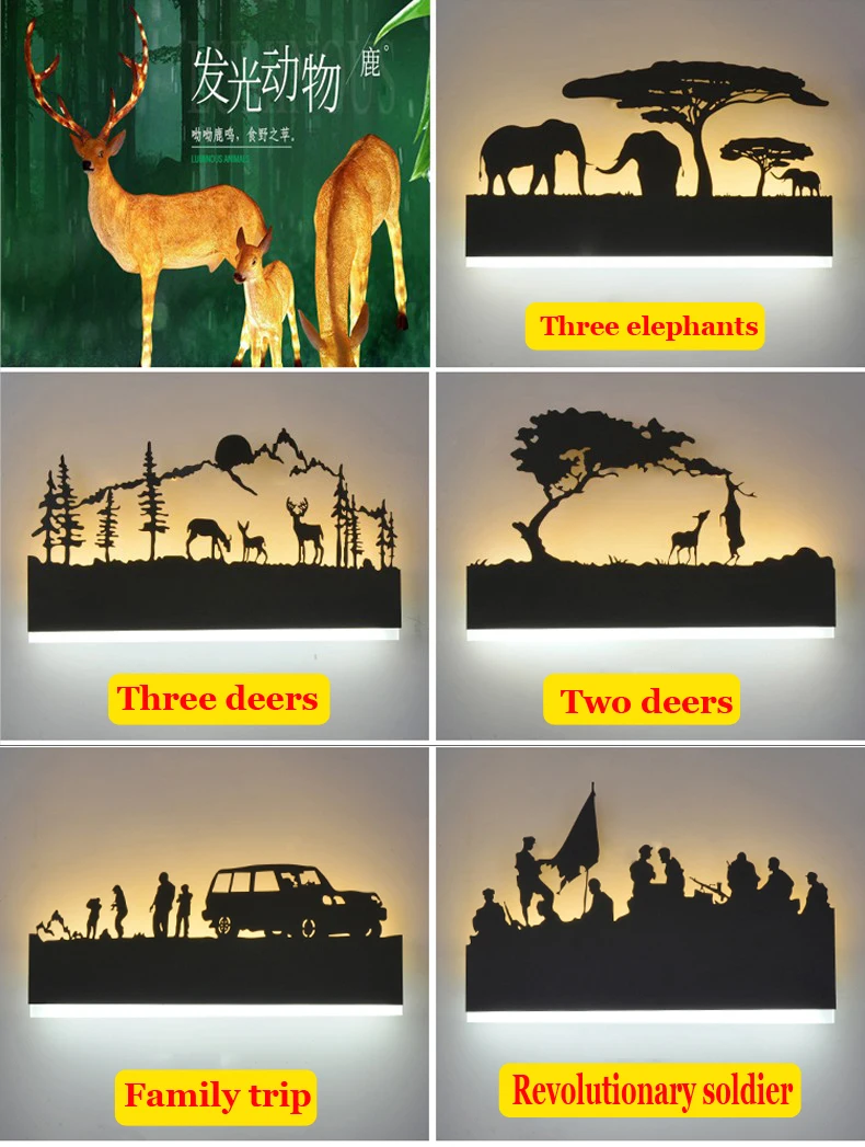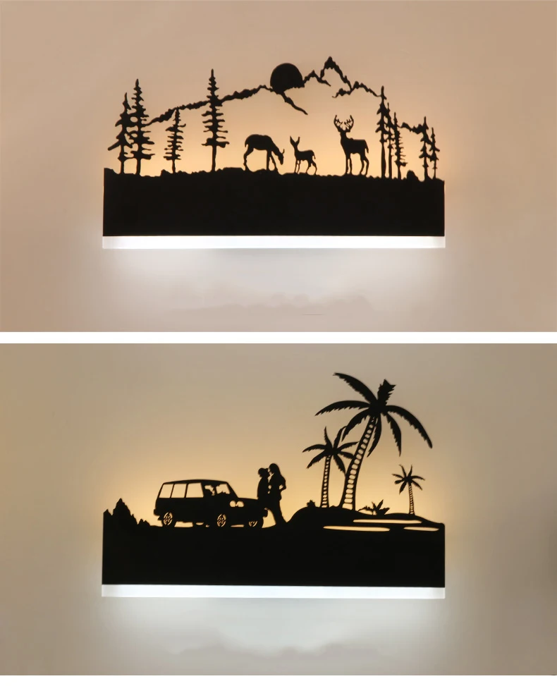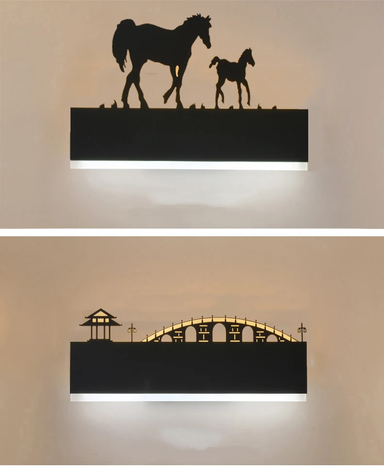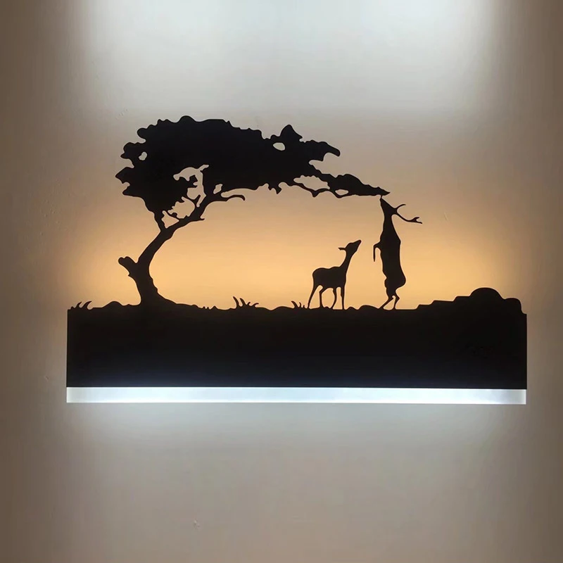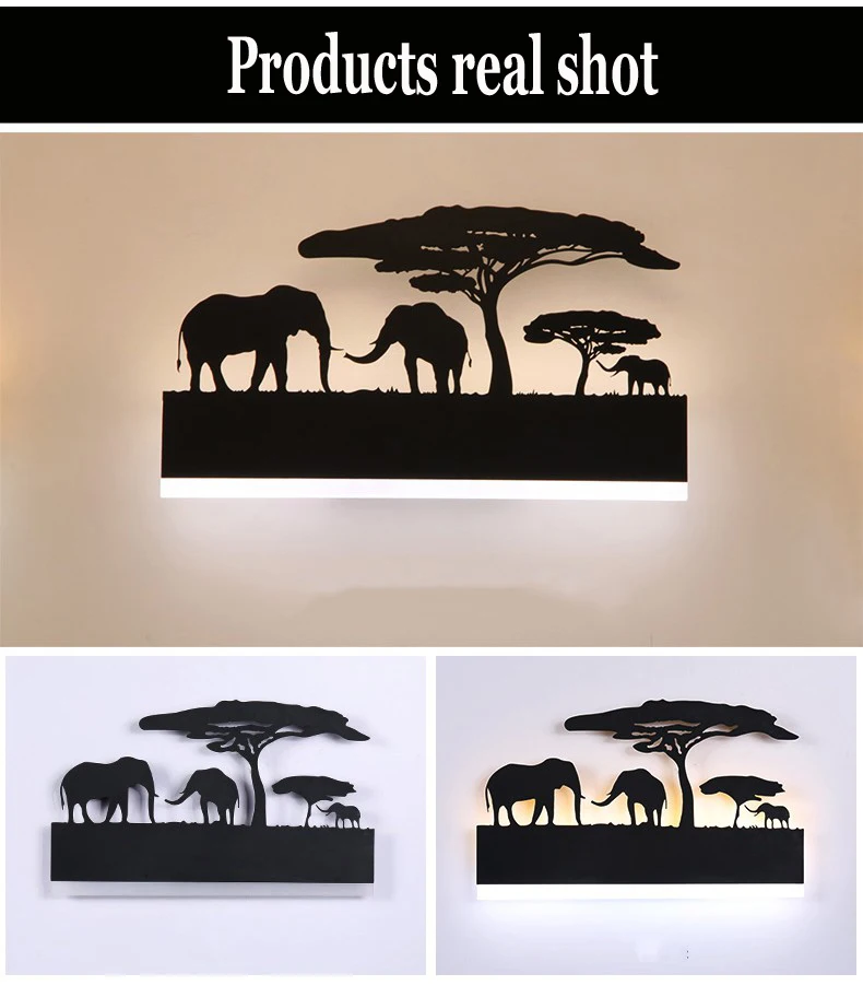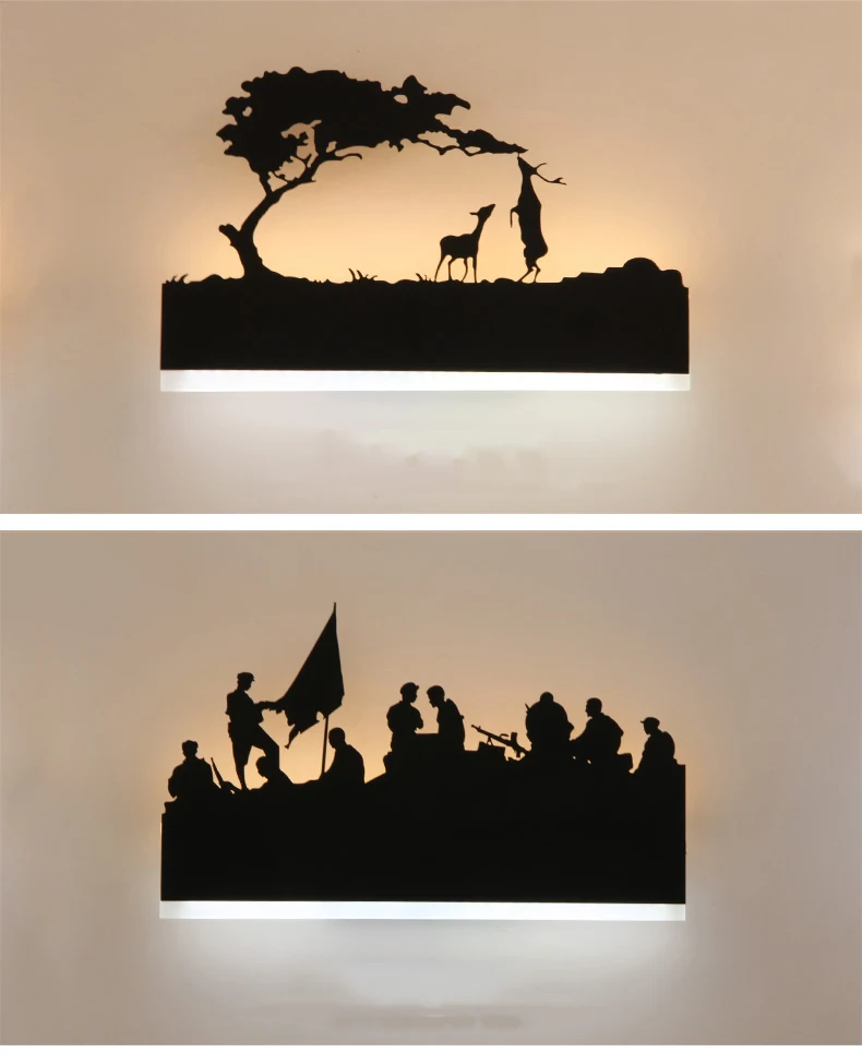 Светодиодная настенная лампа в стиле ретро, креативная живопись, современное черное бра, украшение для ванной, гостиной, комнаты с животными, 110-240 В