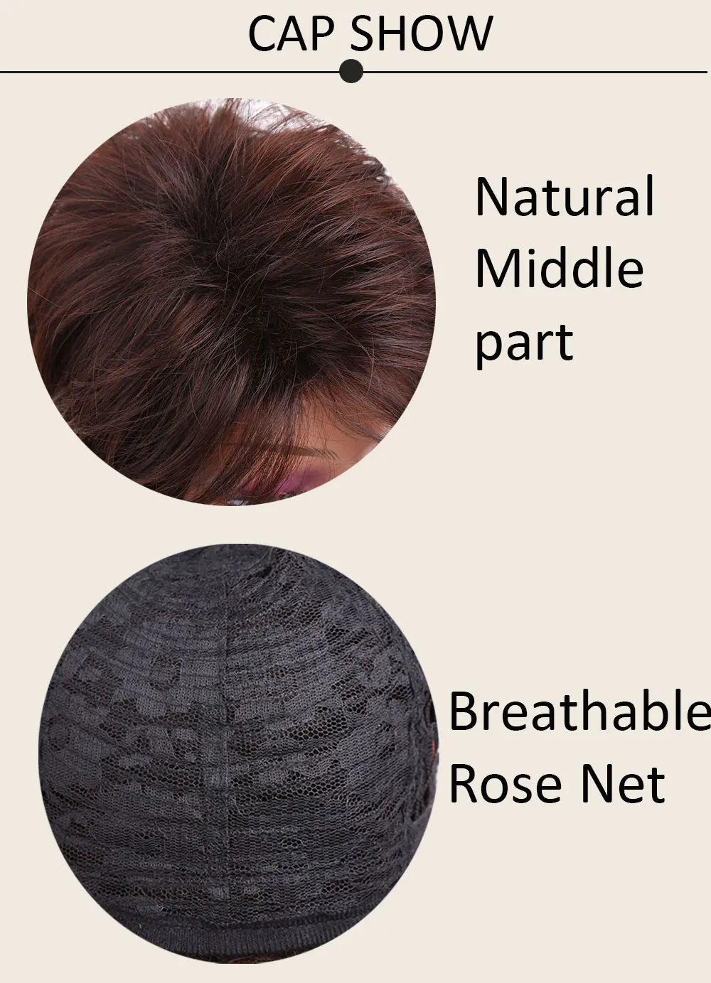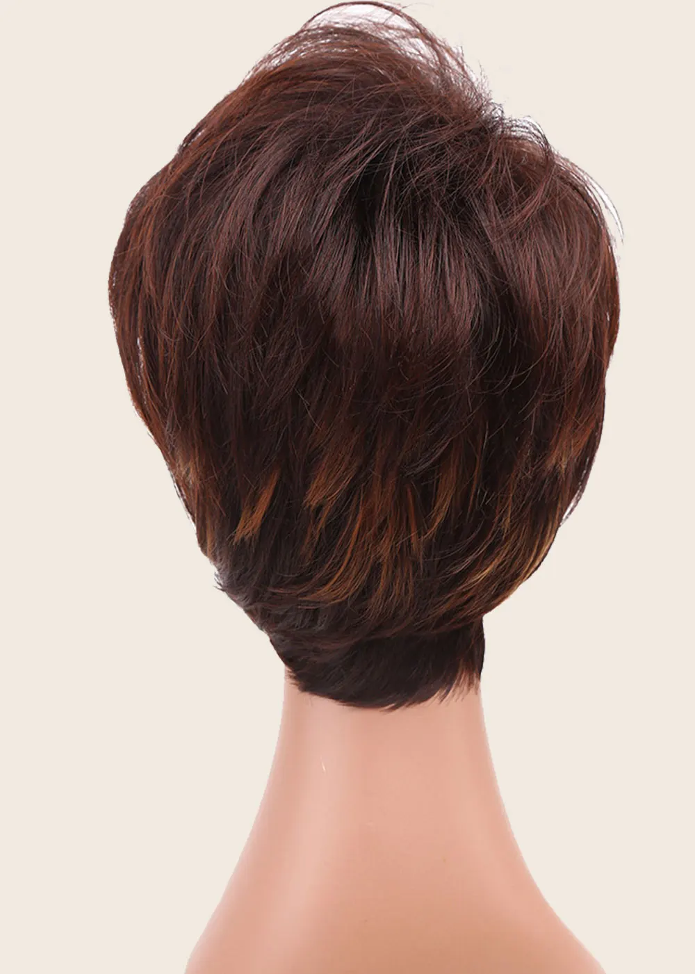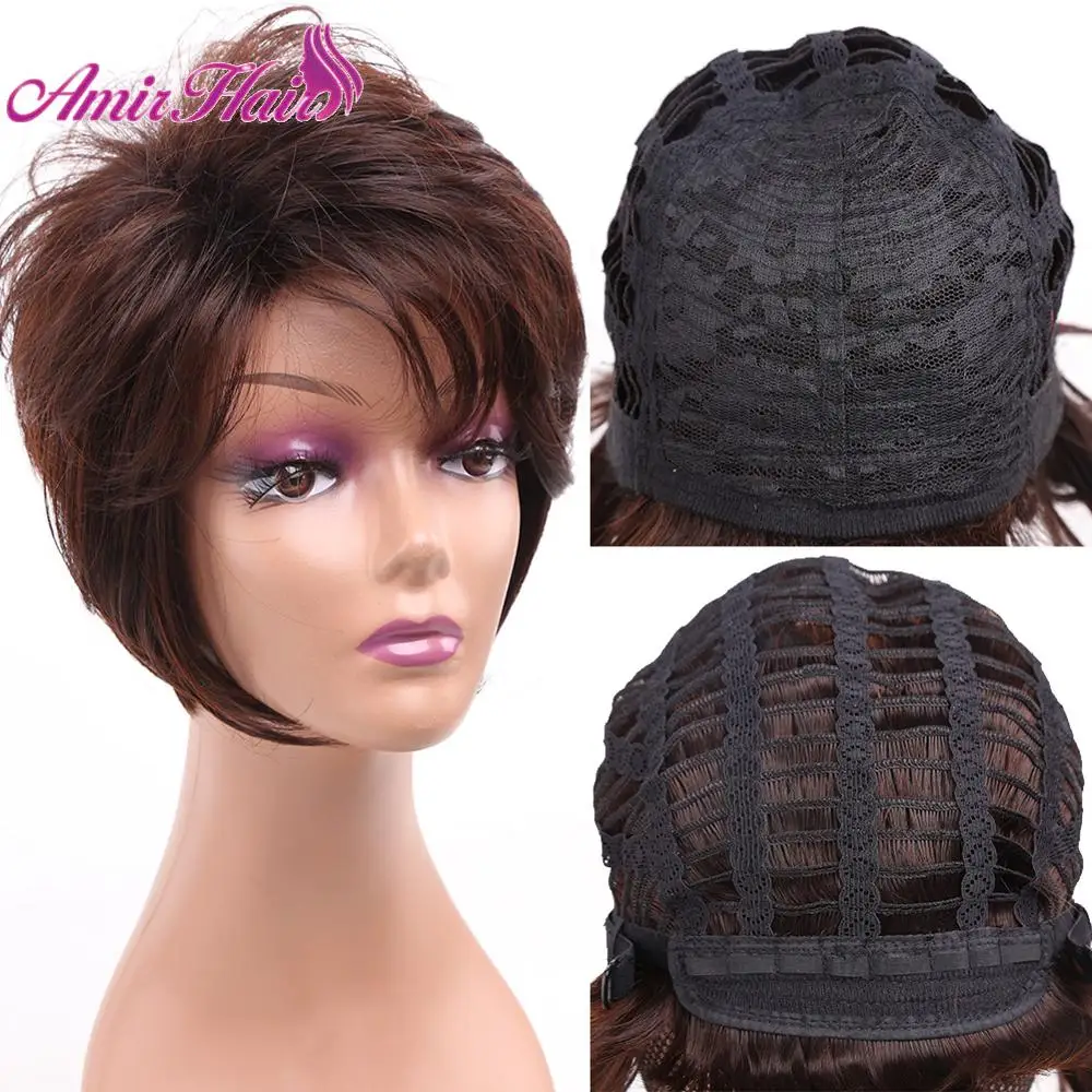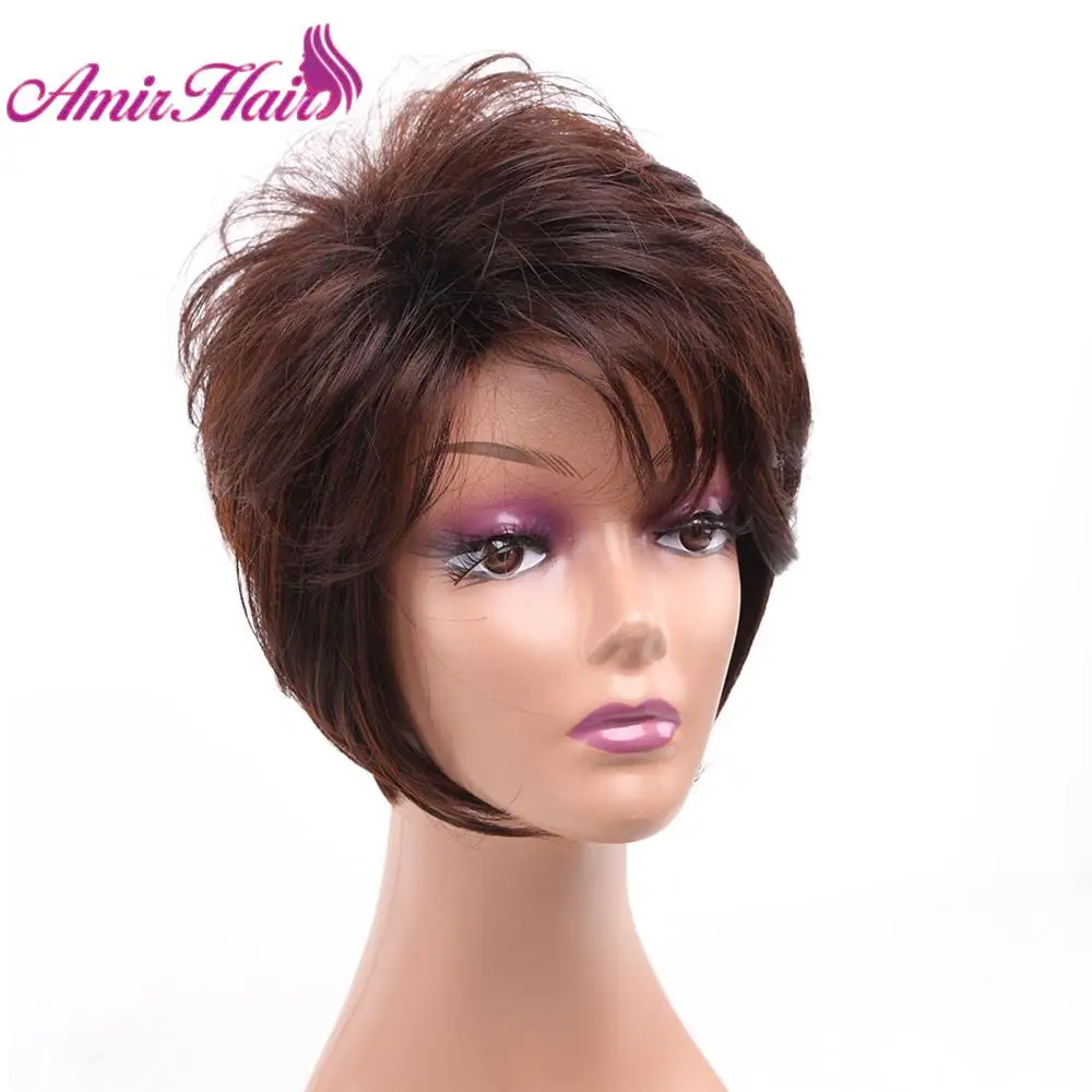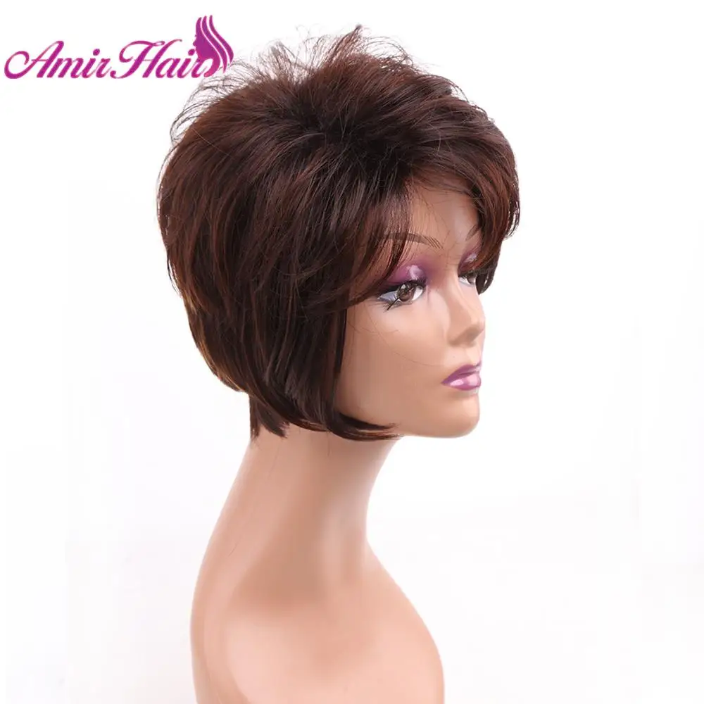 Парик Amir Staright с короткими волосами для женщин, термостойкие синтетические волосы, шатеновые, красные волосы с частью, со слоем боковой челки