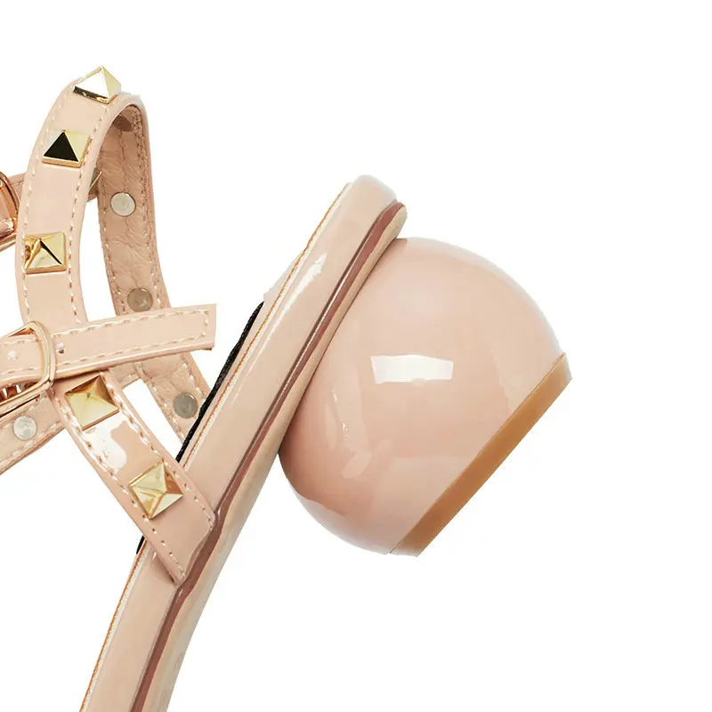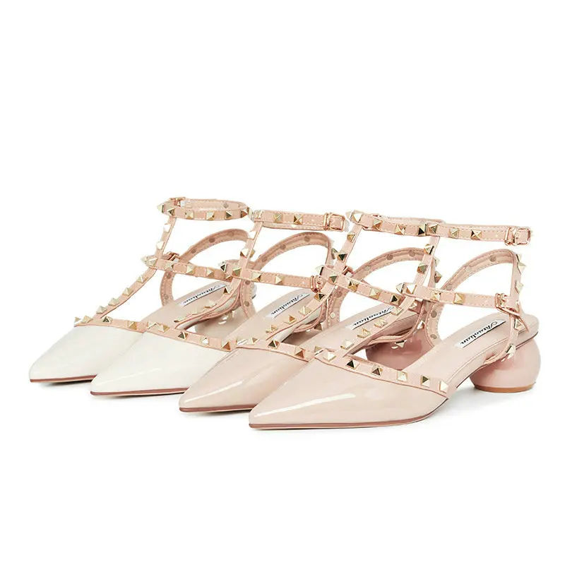 2021 летние римские сандалии с заклепками; Женские босоножки на среднем каблуке с острым носком; Обувь на толстом каблуке