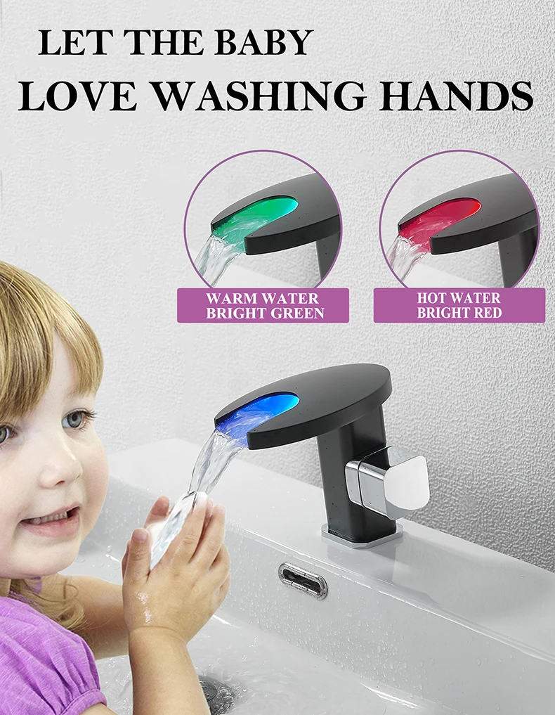 Светодиодный кран Водопад для ванной комнаты BAKALA. Латунный Смеситель для раковины Водопад. Смеситель для ванной комнаты, смеситель для раковины