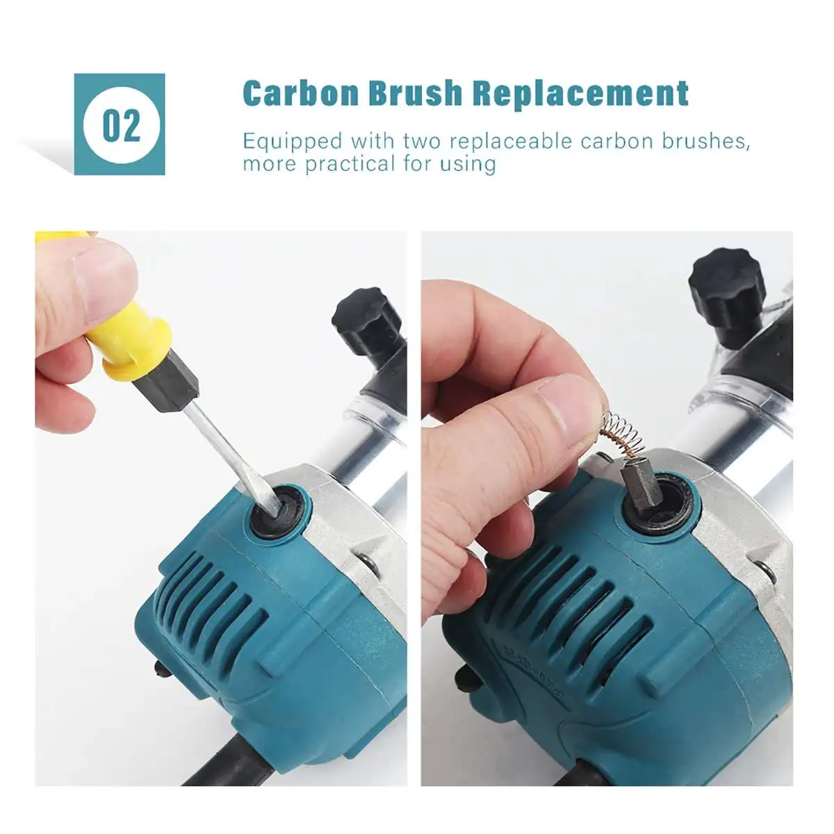 Особенности: -Полностью Медный двигатель, высокая мощность, низкое тепловыделение -Алюминиевый корпус, прочный, водонепроницаемый и пыленепроницаемый -Ручка покрытый резиной, удобная в использовании и простая в эксплуатации -Прозрачное основание, четкое управление, точное управление -Стальной патрон, более плотный зажим и простая замена -Тумблер в одно касание для легкого открывания и закрытия -Внешняя Угольная щетка, легко заменяемая