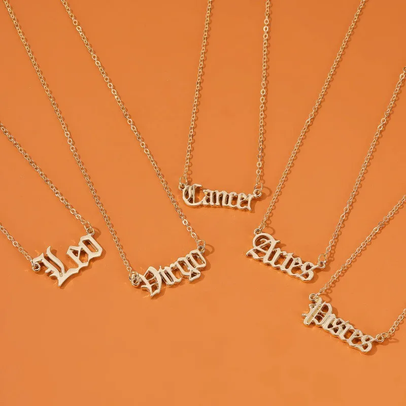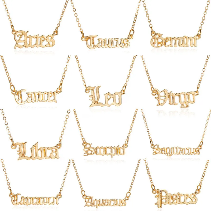 Женское креативное ожерелье с надписью 12 созвездий, ожерелье в европейском стиле из сплава с английской надписью