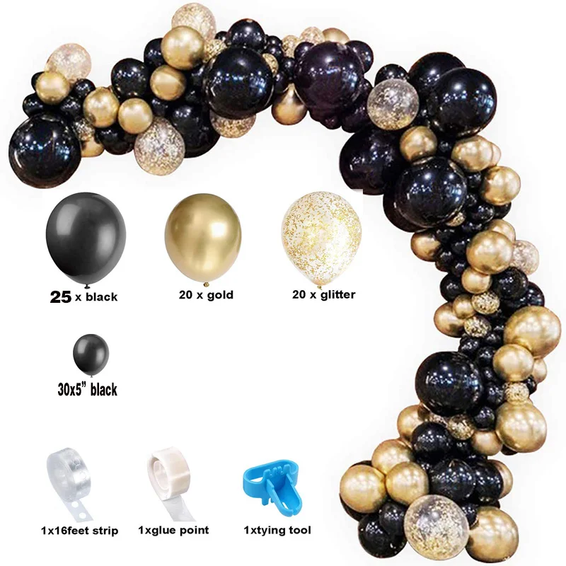 36 шт., черные и золотые воздушные шары, гирлянда, арочный комплект...