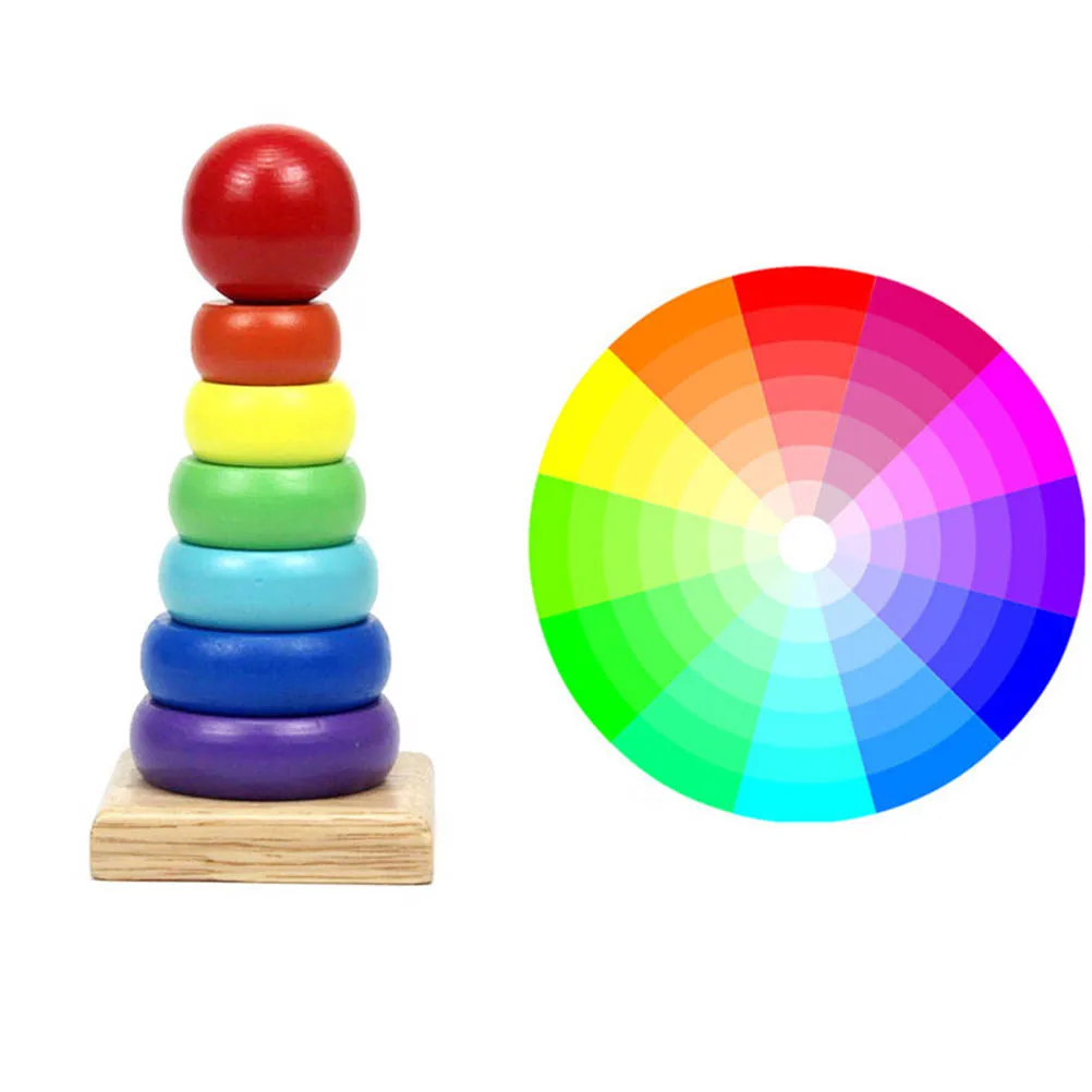 Деревянные штабелируемые кольца для детей, радужные геометрические ...