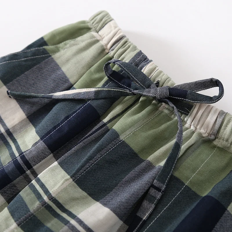 Японские клетчатые парные пижамные брюки для мужчин и женщин весна-...