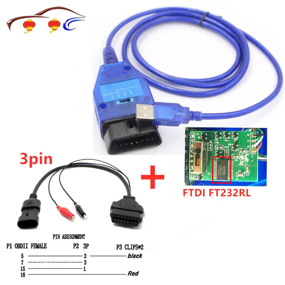 Диагностический инструмент 3pin-16pin, адаптер 12 В, разъем кабеля Obd2 и USB-кабель VAG с чипом FTDI, сканер Vag USB OBD2