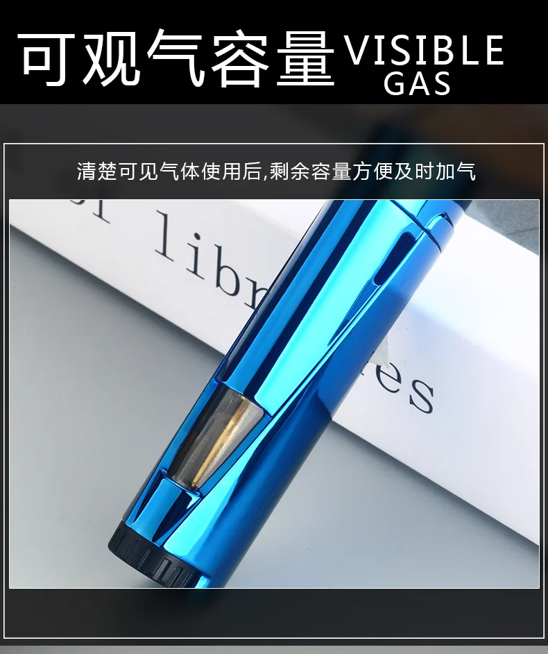 Уличная Тройная зажигалка, 3-струйная газовая зажигалка для сигар, турбо ветрозащитная мощная металлическая распылительная Зажигалка для кухонных труб