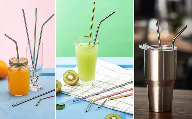 2/4/8 шт. красочная многоразовая соломинка для питья, высококачественная нержавеющая сталь 304 металлическая соломинка с щеткой для очистки, Прямая поставка, VIP link