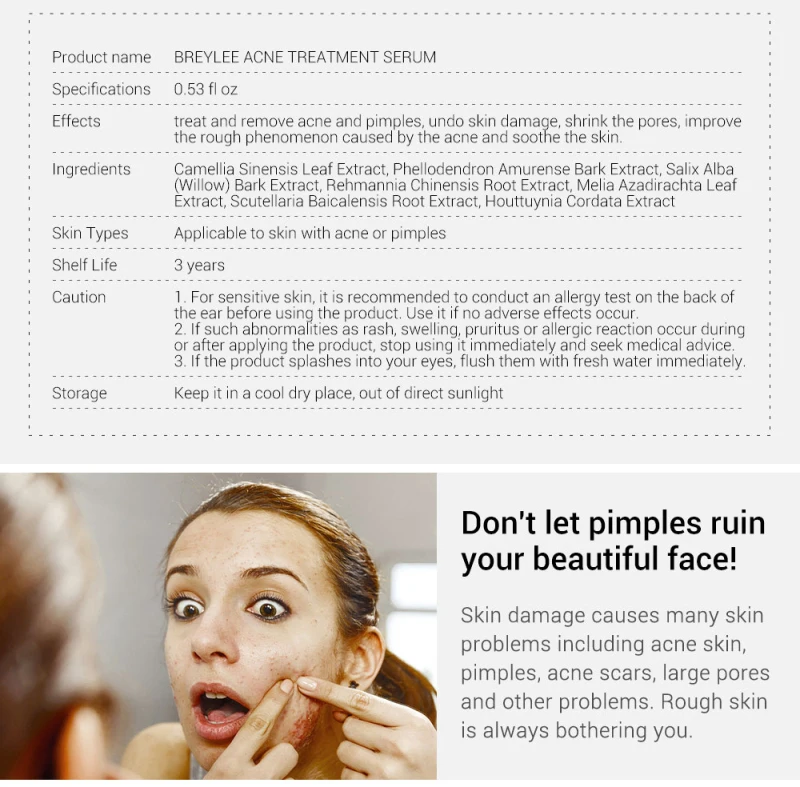 BREYLEE лечение акне сыворотка эссенция для лица против рубцов от акне крем для удаления лица Уход за Кожей Отбеливающий ремонт Удаление прыщей для акне