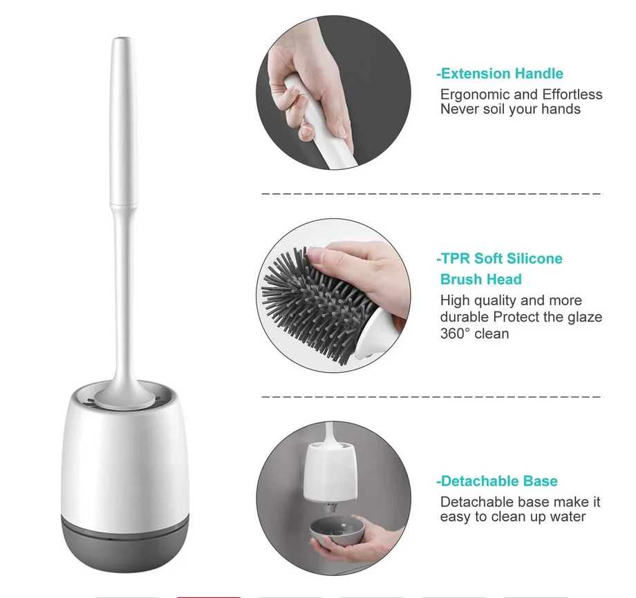 Съемный силиконовый держатель для туалетной щетки, настенные чистящие щетки для ванной комнаты, длинная ручка, быстросохнущая мягкая щетка, ящик для воды