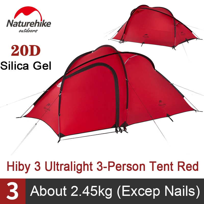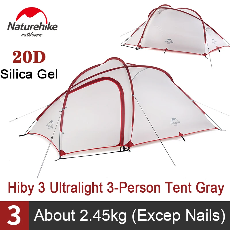 Вес 3-х палатки Hiby: силикон с нейлоновым покрытием 20D 3,2 кг (включая упаковку)