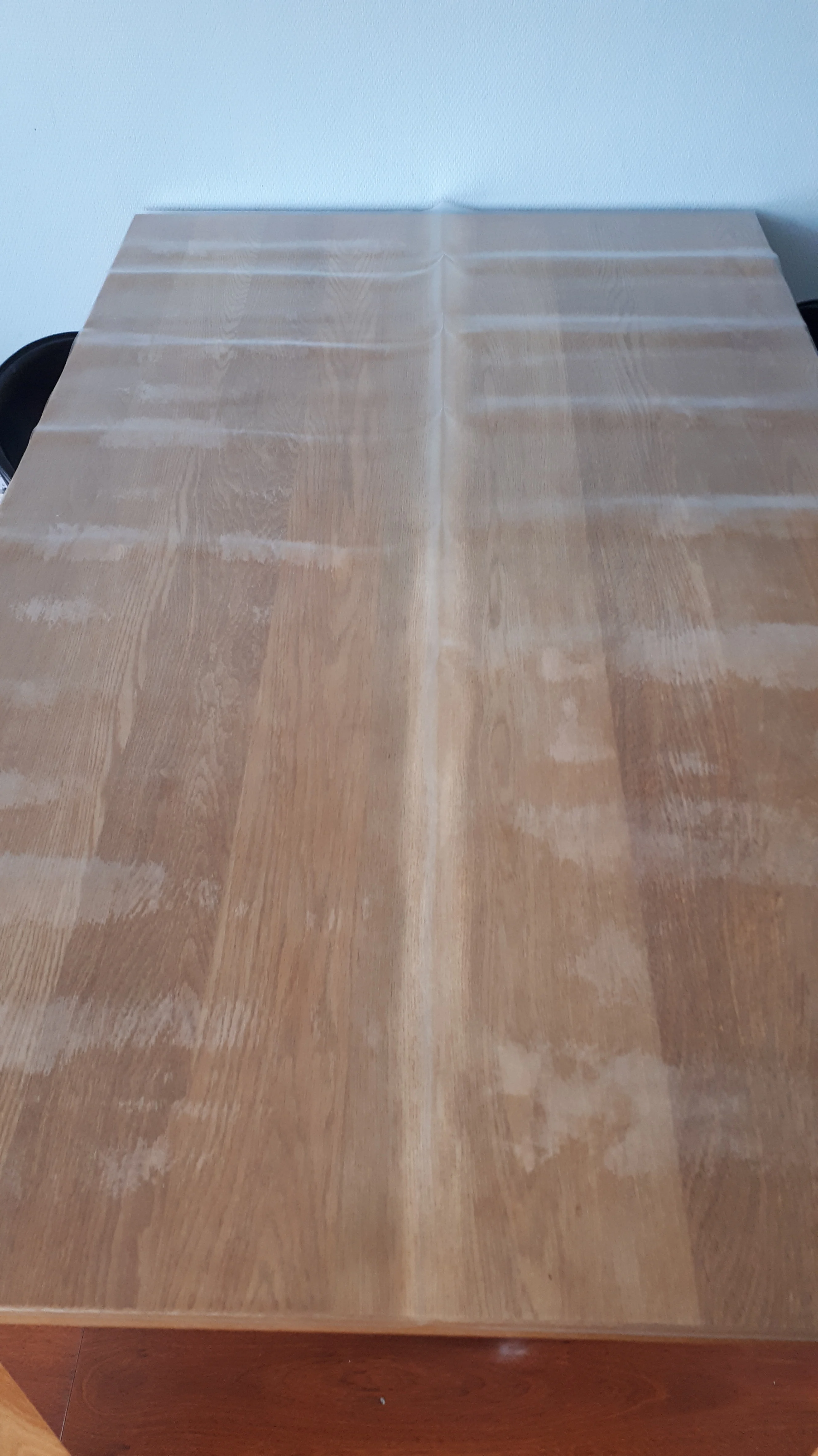 В принципе, покупкой довольна. Но свернут был в квадрат, от этого видны места сгибов, надеюсь, распрямится. На 1 см больше по длине и ширине, чем заказывала. Присутствует очень-преочень сильный запах, надеюсь, выветриться. Но скатерть лягла хорошо, ребенок стянуть не может.