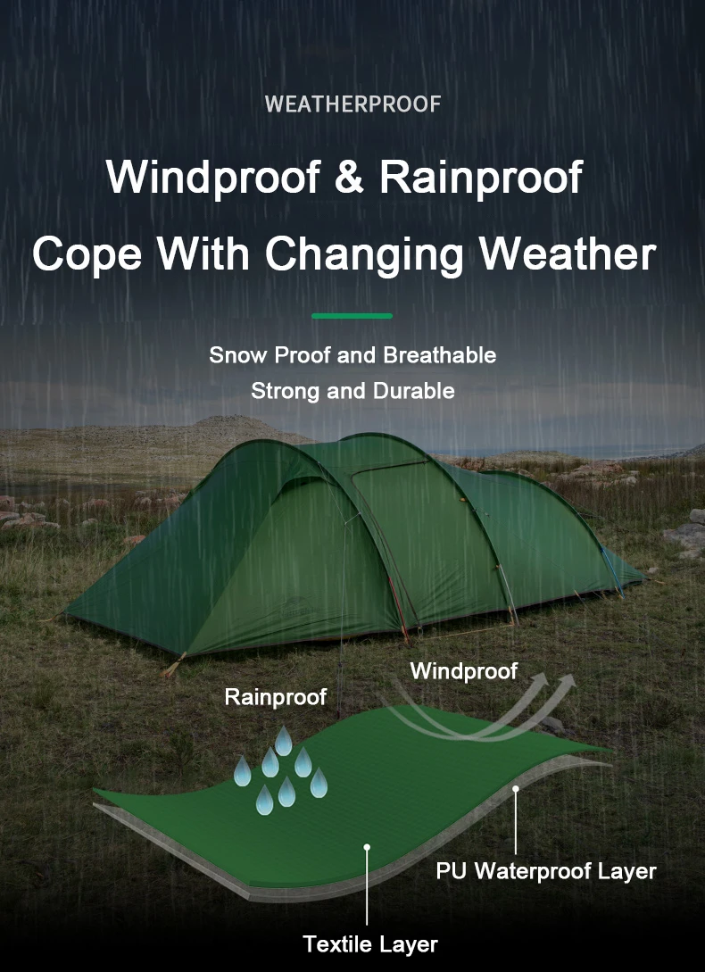 Туристическая палатка Nturehike Opalus, Ультралегкая Всесезонная палатка для кемпинга на 2-4 человек, 15D20D40D210T, для походов и альпинизма