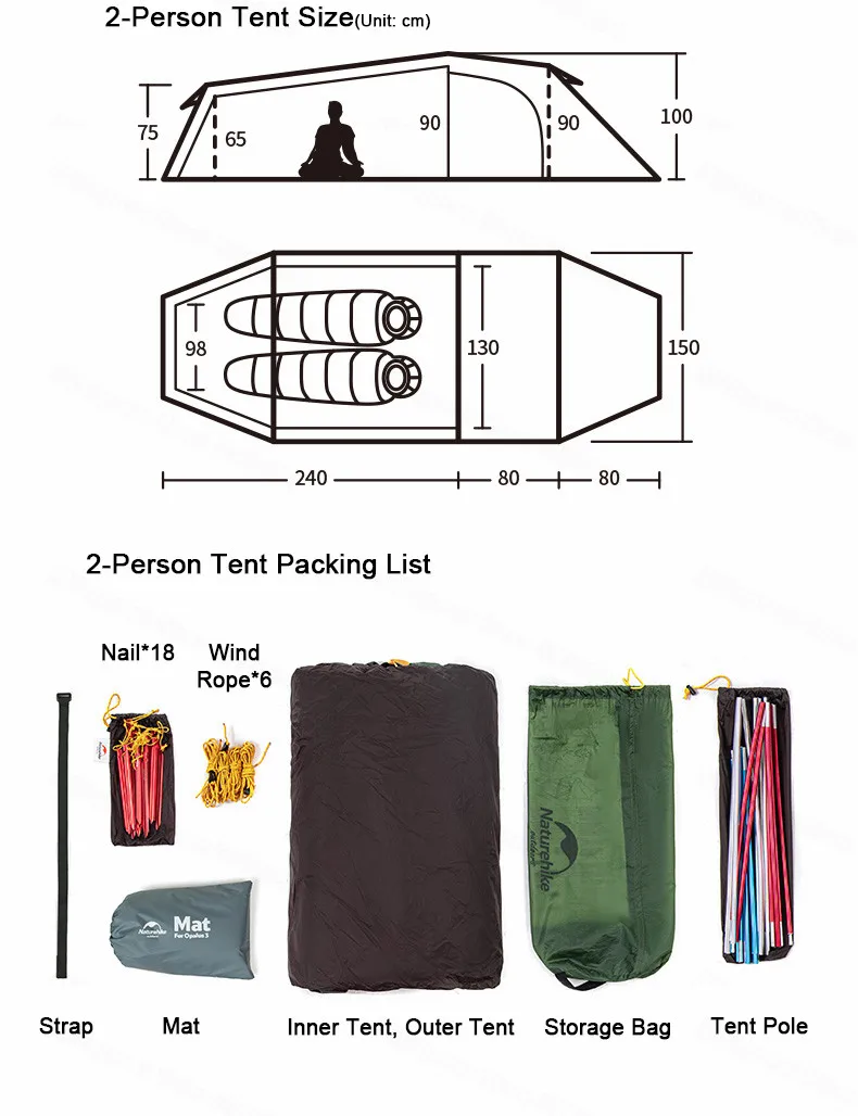 Внешняя палатка: 210T полиэстер плед (210T) / 20D нейлон силикон (20D) -Водонепроницаемый 3000 мм