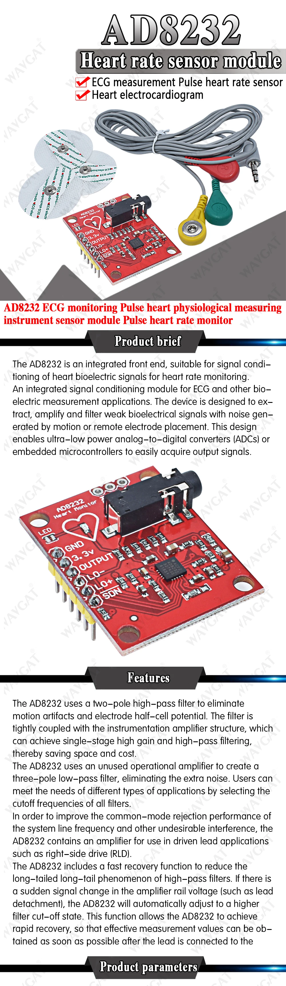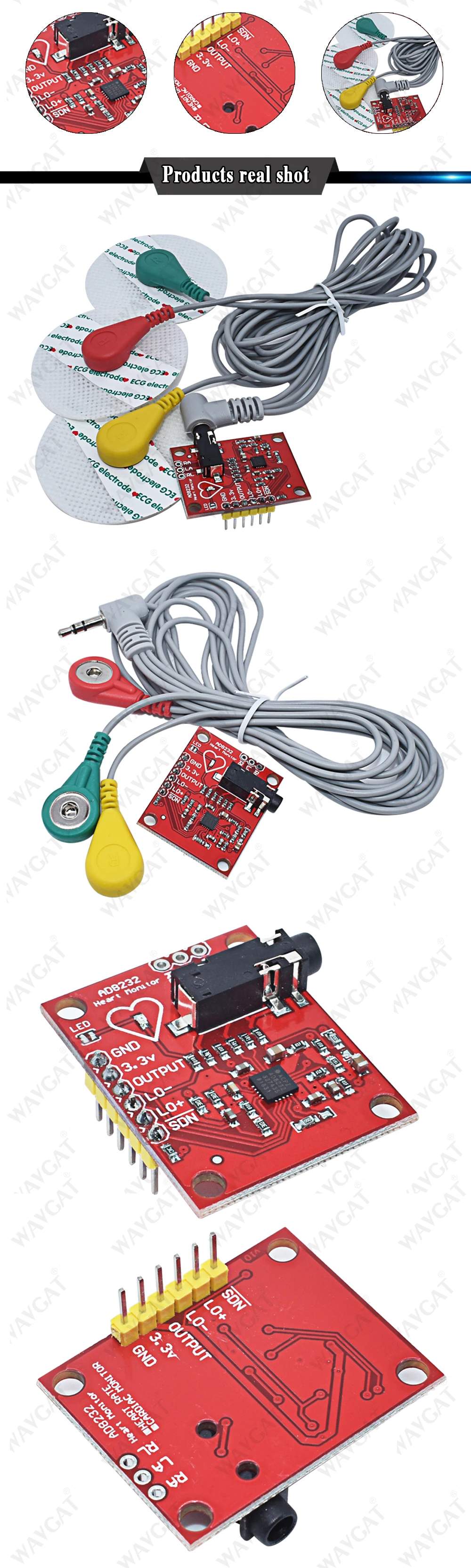 Модуль ЭКГ WAVGAT AD8232, фотоэлемент, пульс, ЭКГ, датчик мониторинга, комплект модуля для Arduino UNO R3