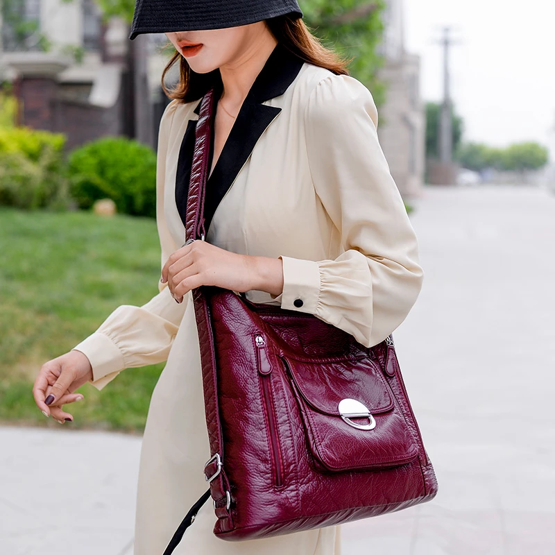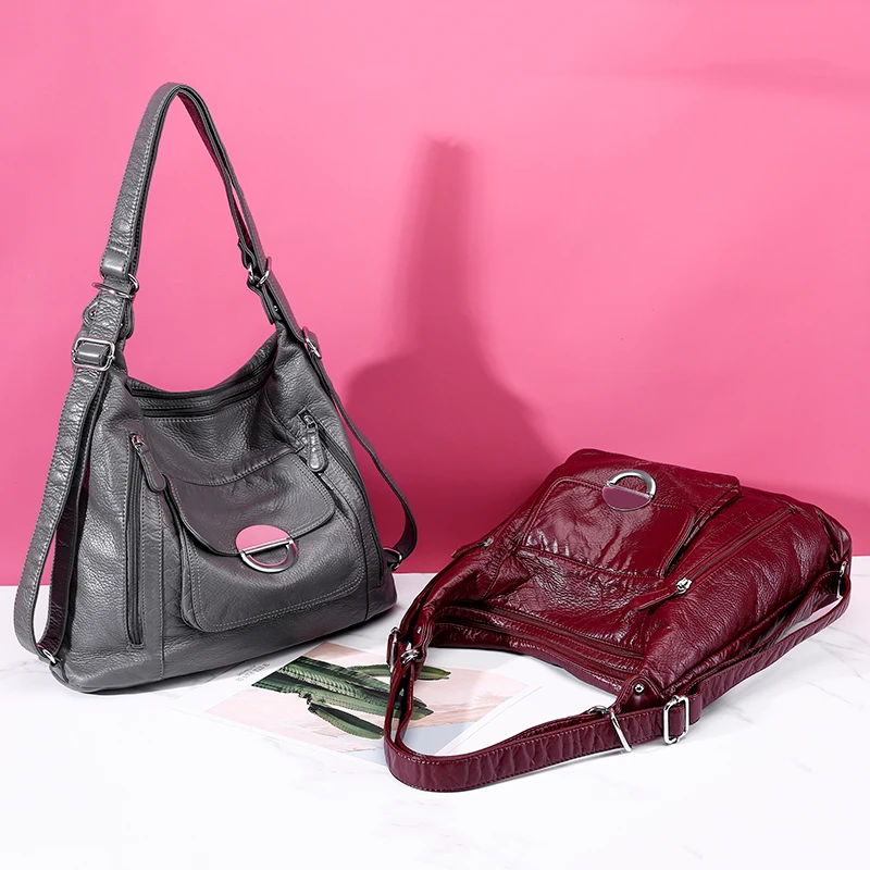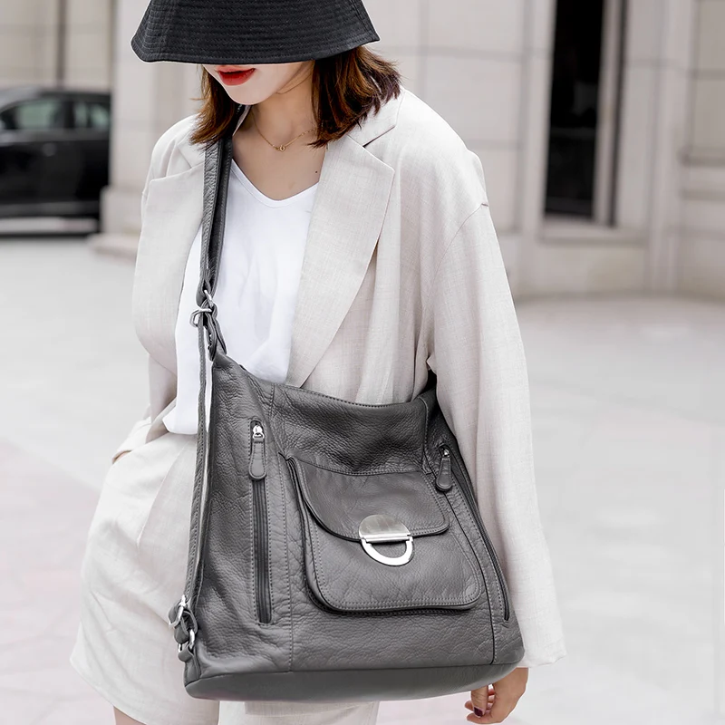 Модная сумка через плечо из промытой кожи, большая емкость, Портати...