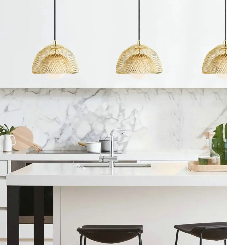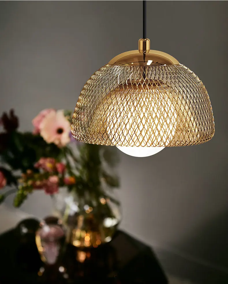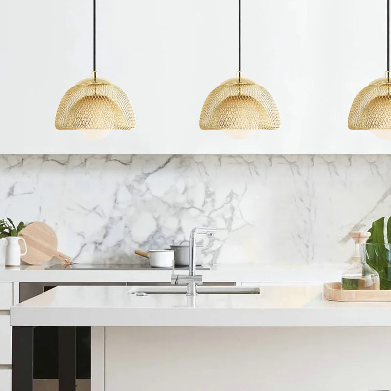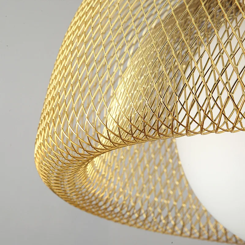 Золотая Подвесная лампа в стиле постмодерн, стеклянный абажур с двойной железной сеткой светодиодный ная Скандинавская Подвесная лампа для подвесная потолочная лампа кровати