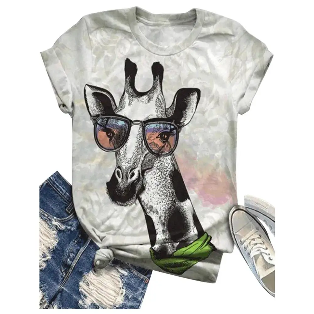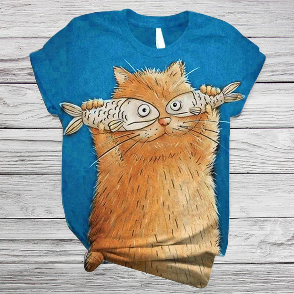 Винтажные рубашки, женские блузки, 2020, размера плюс, Женские топы с коротким рукавом и 3D принтом кошки, рубашка с круглым вырезом, женская блузка