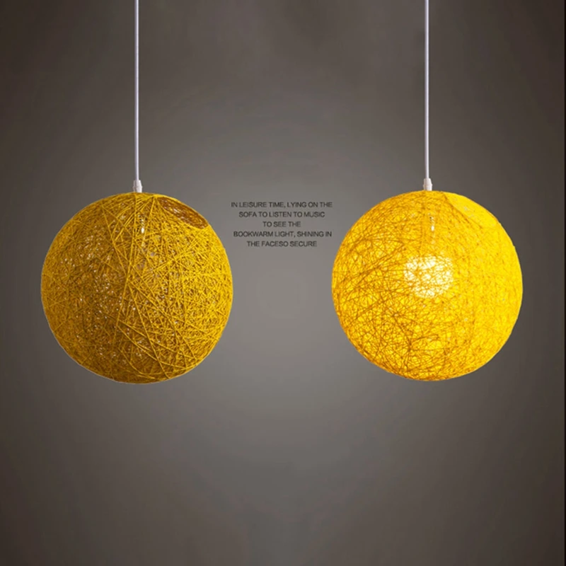 Акция! Люстра из ротанга и пенькового шара, 2 шт., индивидуальное творчество, сферический абажур-гнездо из ротанга, Зеленый бамбук и желтый БАМ