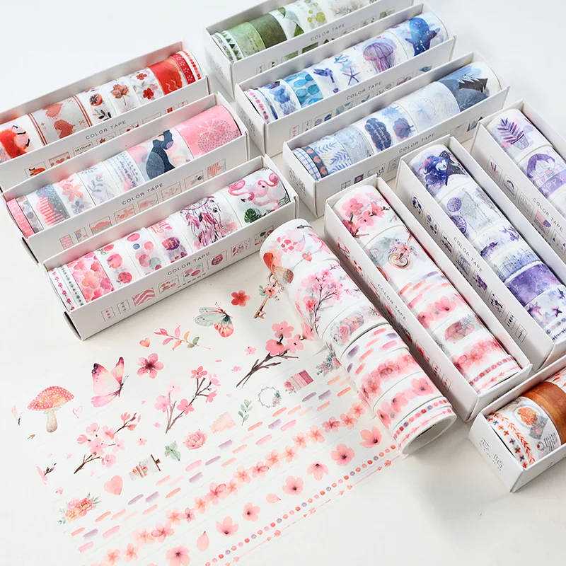 8 шт. Оригинальный красочный Бумага набор декоративного скотча Васи с цветным принтом с рисунком вишни для детей от Ocean Forest клей малярный наклейки с лентами украшения для домашнего использования, A6324