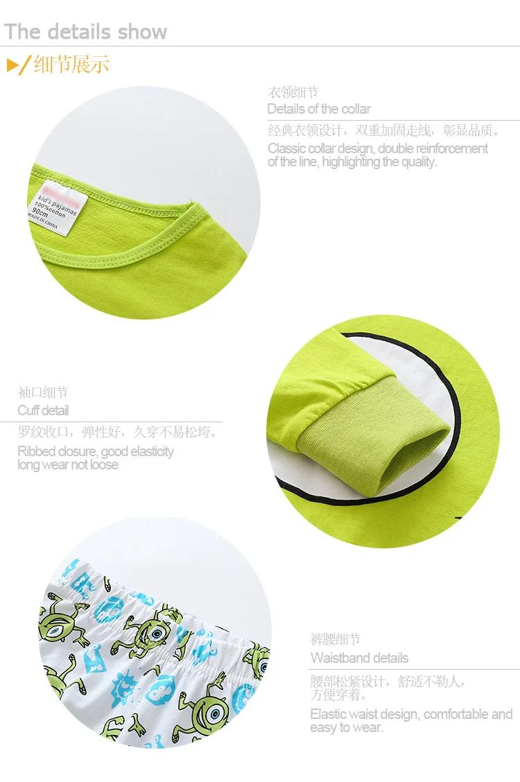 Майк Майкл Wazowski из хлопка с рисунком из мультфильма, Детская домашняя одежда для детей детская одежда с длинными рукавами для мальчиков, пижама с длинным рукавом; Детская Пижамный костюм От 2 до 7 лет