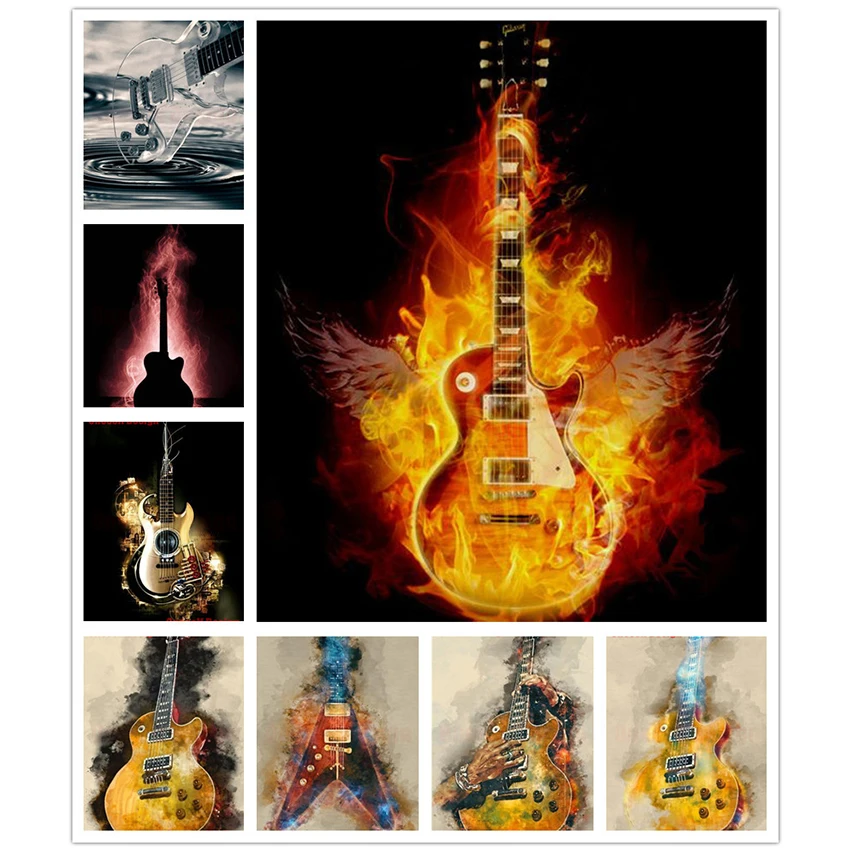 Популярная 5d алмазная картина полностью квадратная огненная гитара Стразы diy Алмазная вышивка полный набор декор в форме гитары для дома