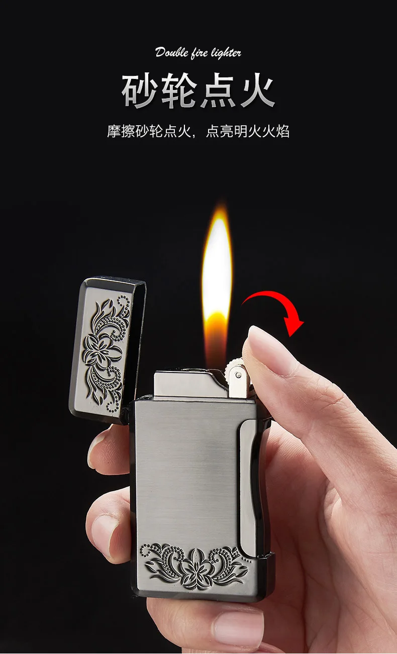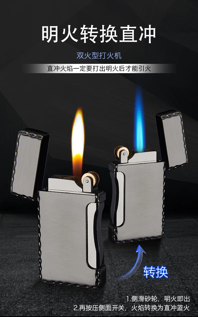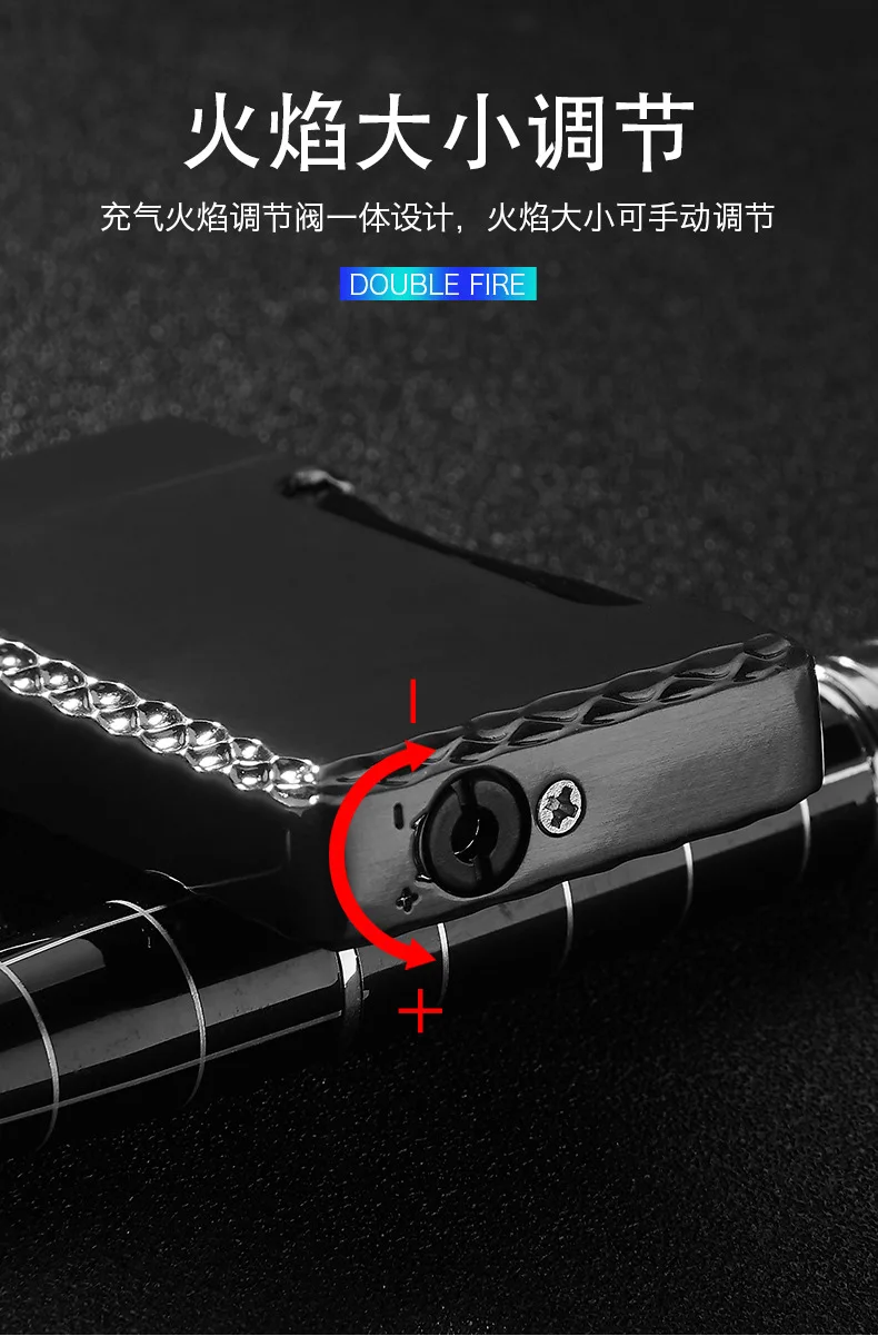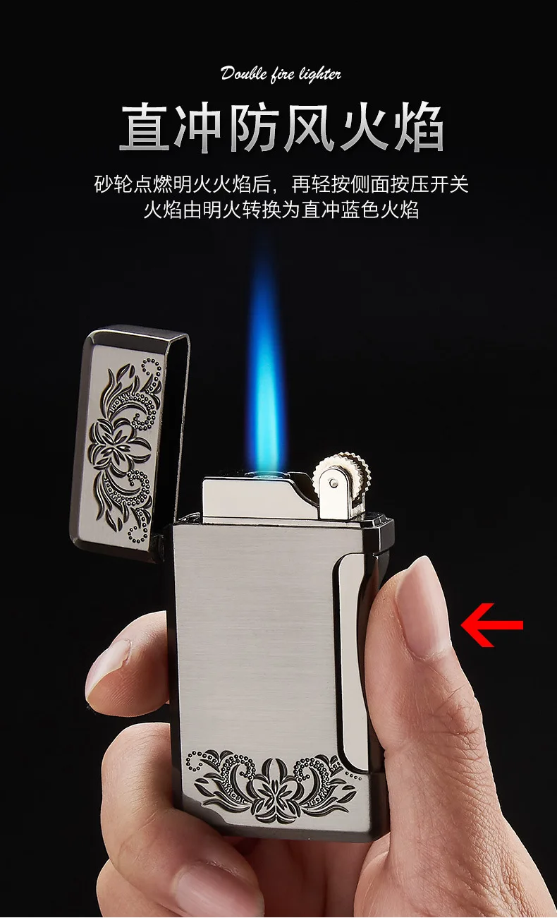 Зажигалка с двойным пламенем, Бутановая, для сигарет, зажигалка Free Fire Straight, металлическая ветрозащитная фонарь жигалка, турбо Кремниевая газовая зажигалка