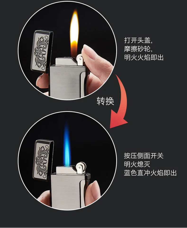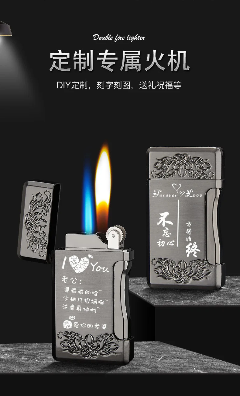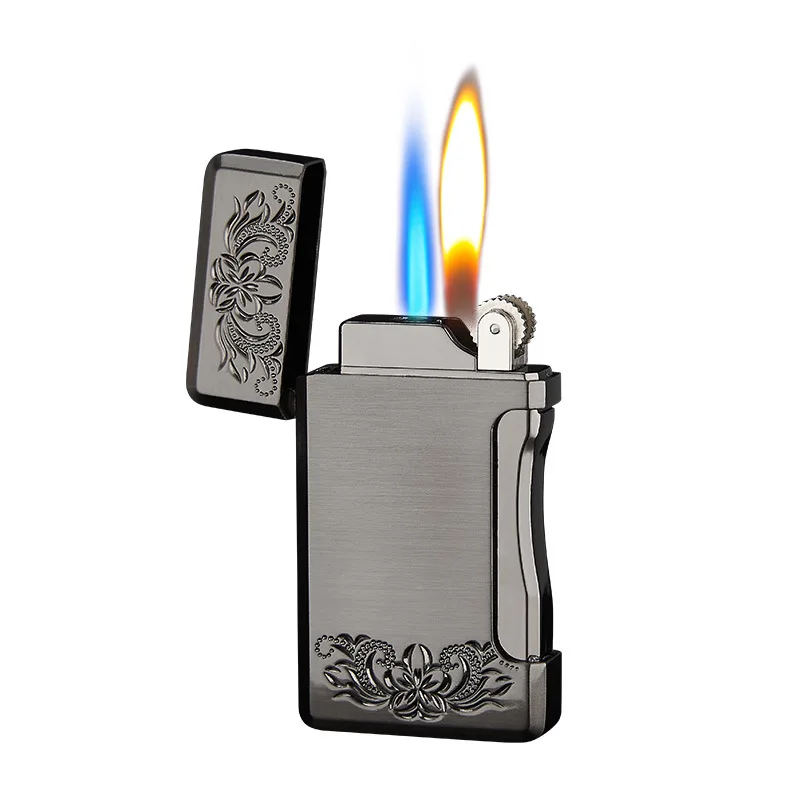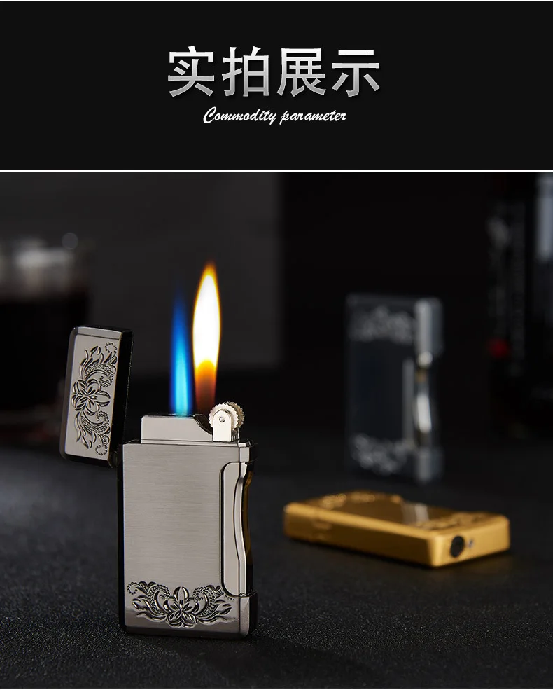 Зажигалка с двойным пламенем, Бутановая, для сигарет, зажигалка Free Fire Straight, металлическая ветрозащитная фонарь жигалка, турбо Кремниевая газовая зажигалка