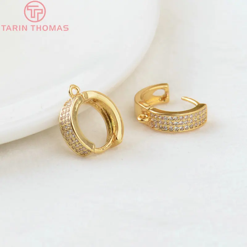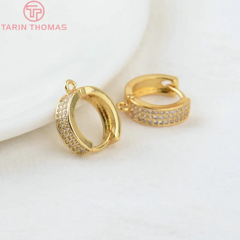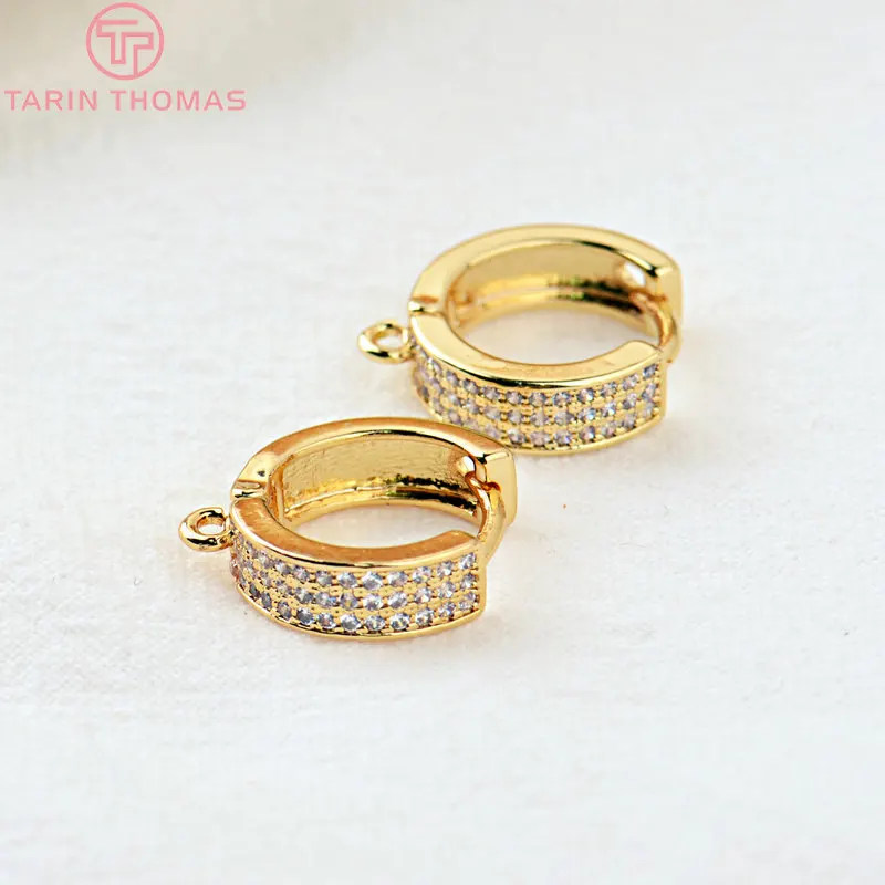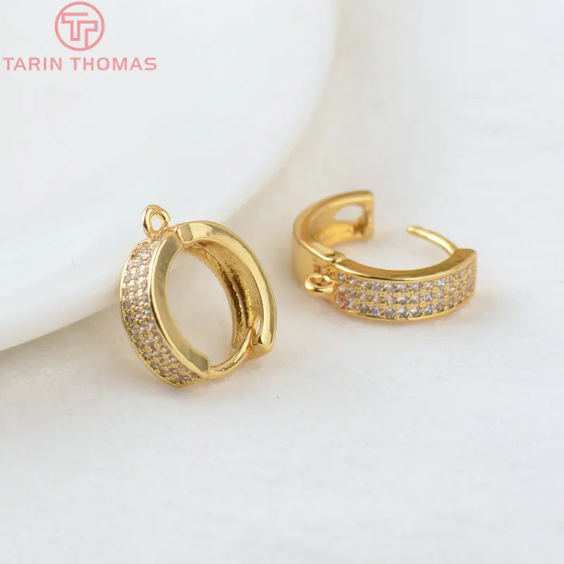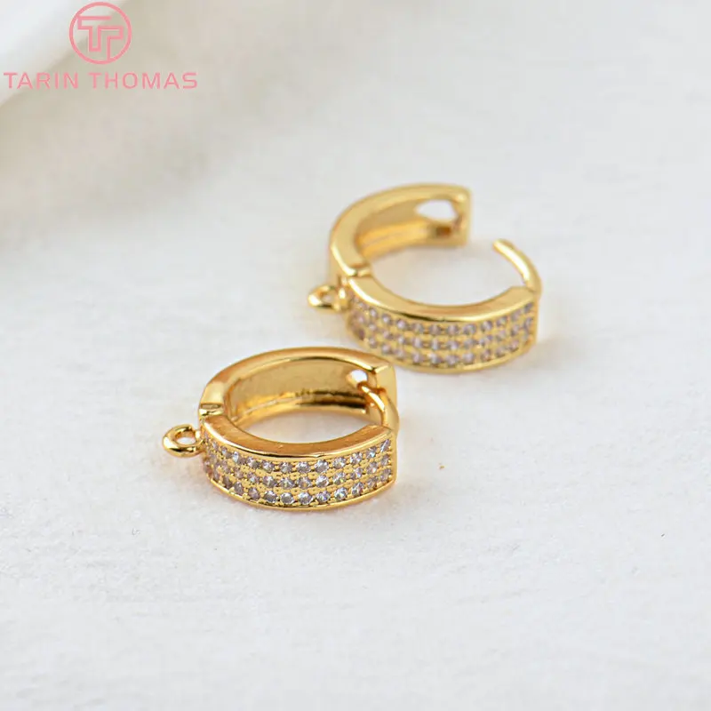 (2338)4 шт. 15 мм отверстие 1,5 мм 24-каратный золотой цвет латунь с цирконом круглые серьги-кольца зажим высокого качества