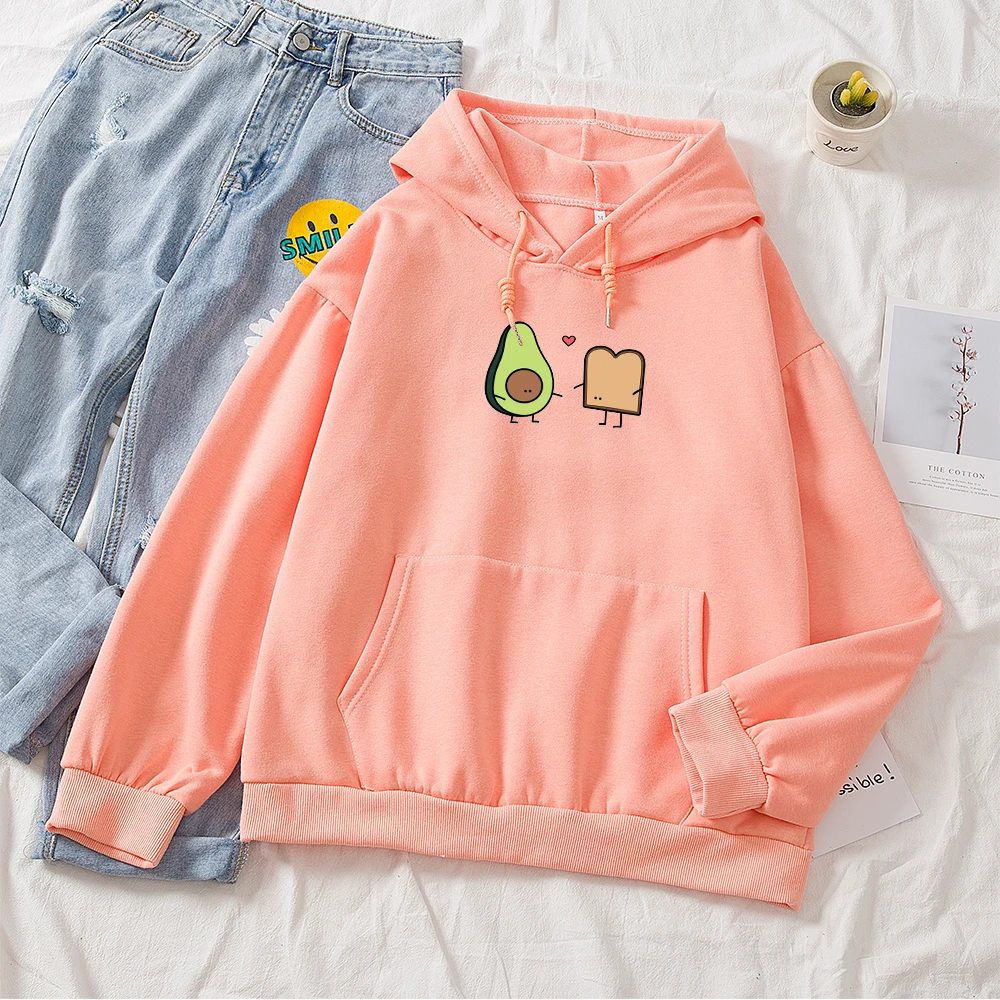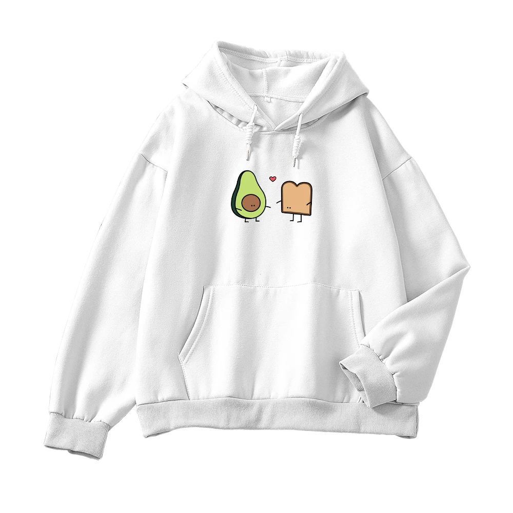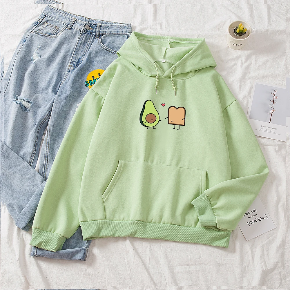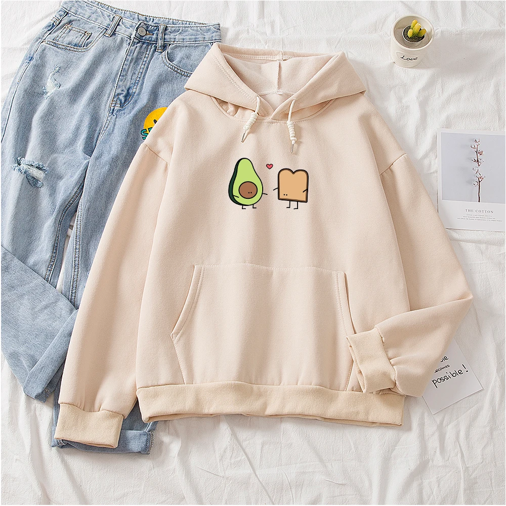 Хлопковые Толстовки для влюбленных пары, милые толстовки в стиле Харадзюку С Рисунком авокадо, веганский хлеб, женская уличная одежда в стиле Харадзюку, свитшоты оверсайз